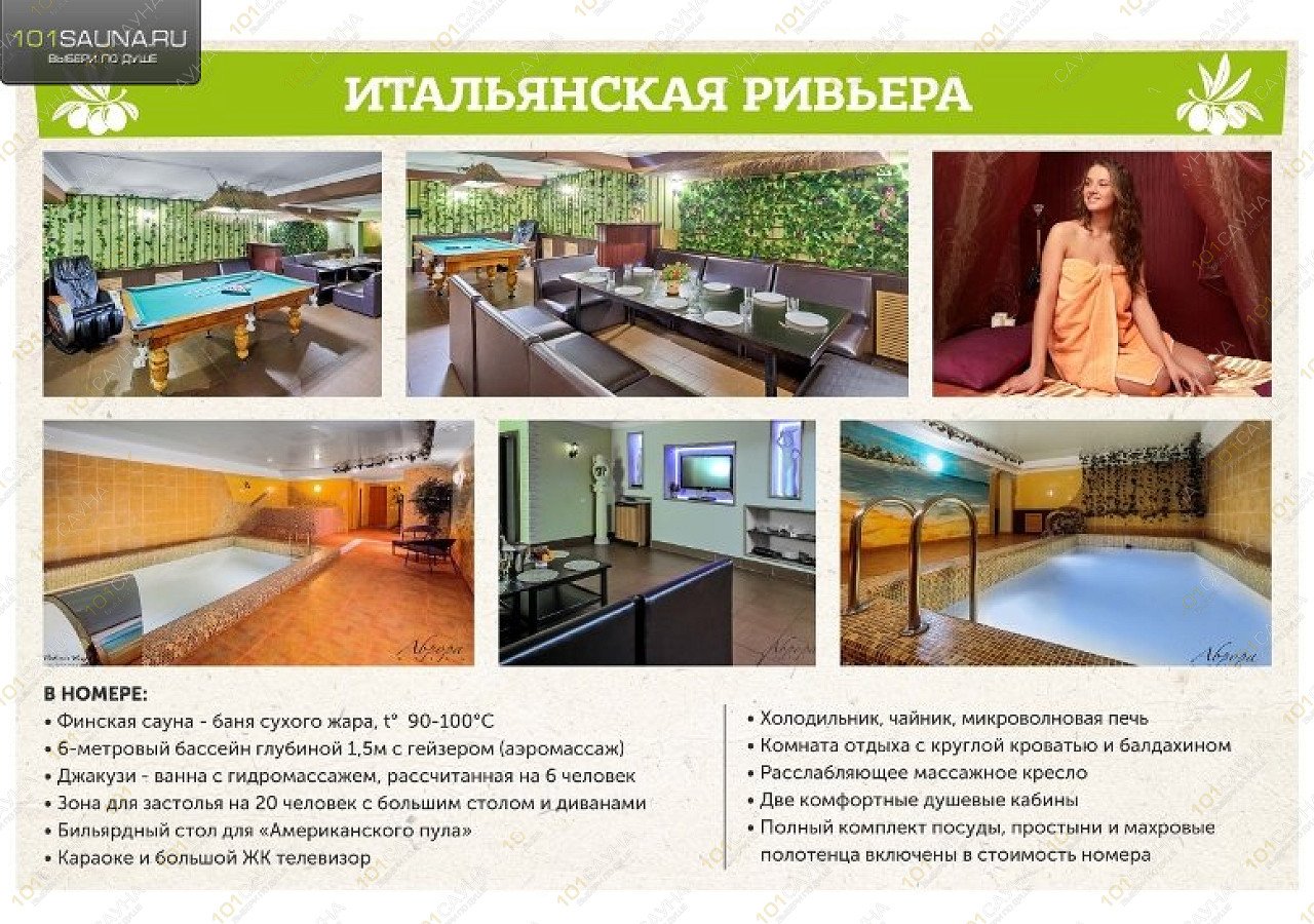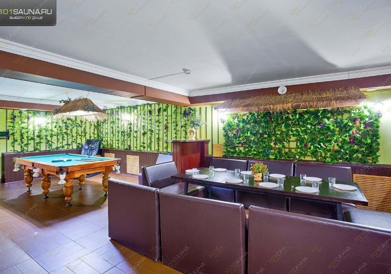 Предлагаем выбор услуг: большой бассейн, обливное ведро, караоке, ТВ, массаж, бар, ресторанная кухня, бильярд, комната отдыха..