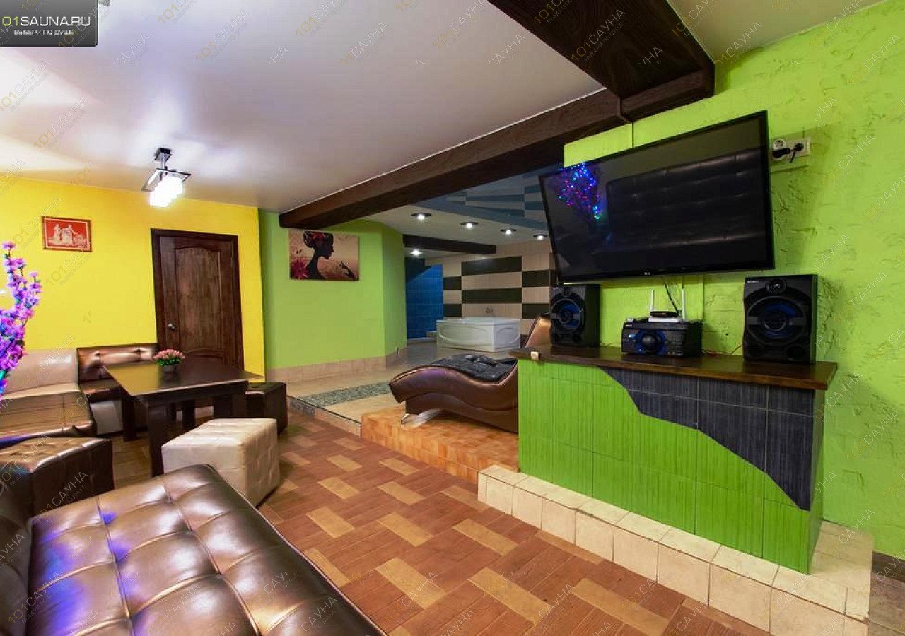 Предлагаем выбор услуг: Бассейн с гейзером размером 2,5*4,5 м глубиной 1,80 см с подогревом до 26 градусов и фильтрацией, джакузи на 4 человека с гидромассажем, обеденная зона с диванами, комнаты отдыха, массажное кресло, цифровое ТВ, караоке, муз.центр, веники, обливочное ведро, банные принадлежности, напитки, закуски, нарды и шахматы, бесплатная парковка, такси, доставка блюд по меню ресторана.