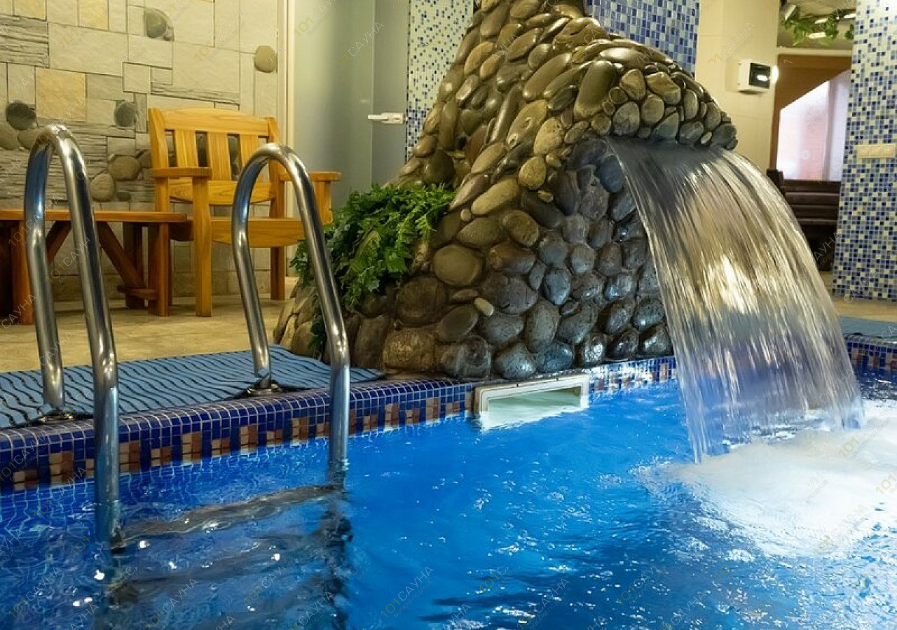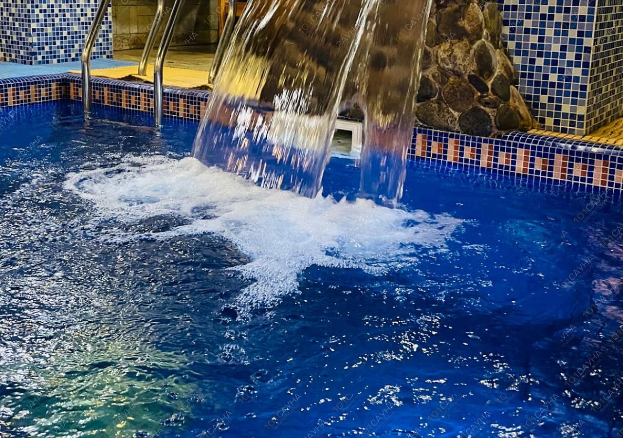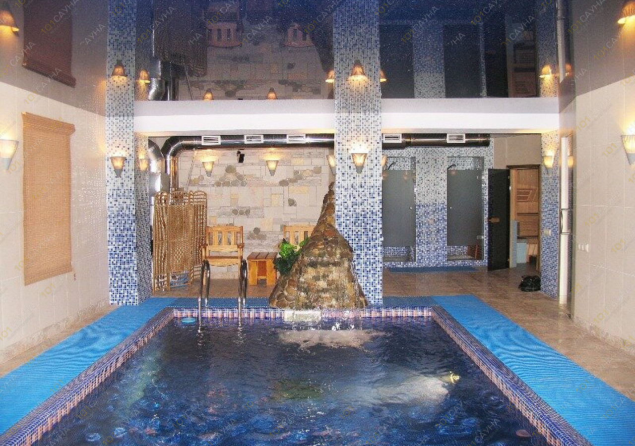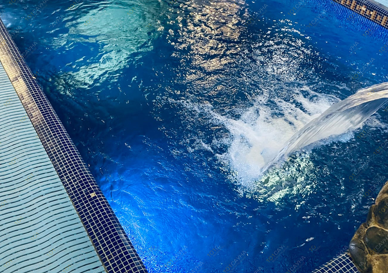 - бассейн размером 3х6, двухуровневой глубиной ,с подсветкой и подогревом аттракционами (водопад, гейзер, противоток - очень мощный).