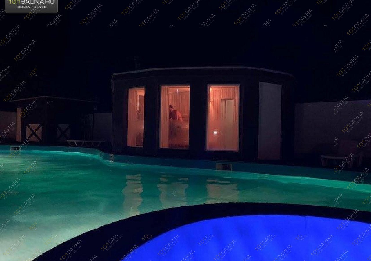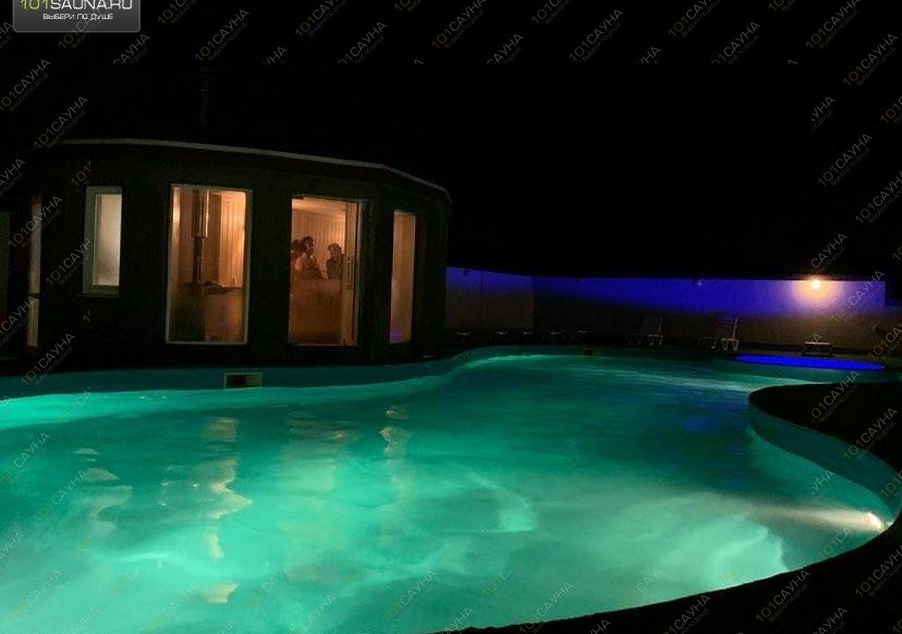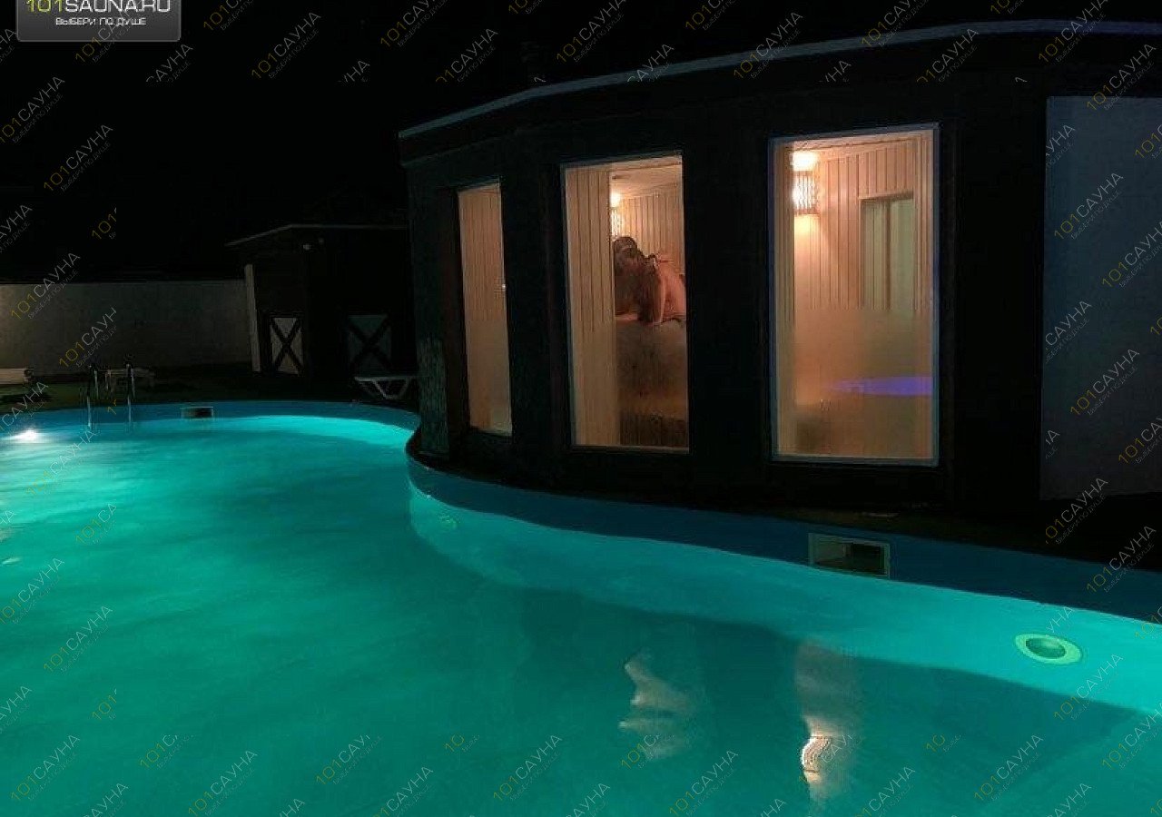 Сауна на дровах в пгт Заозерное. Эксклюзив - Парилка с панорамными окнами и выходом сразу в бассейн с подсветкой в форме восьмерки.