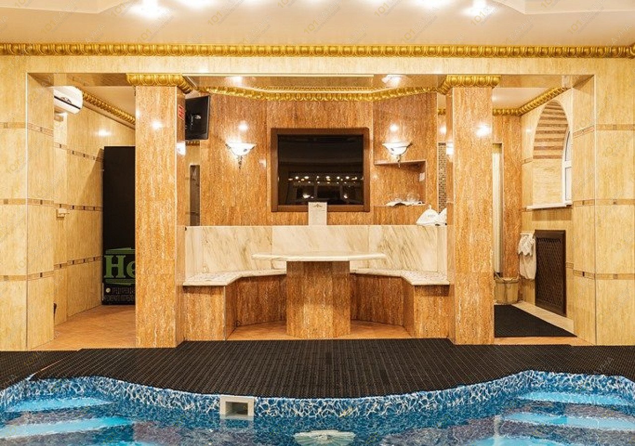 Предлагаем выбор услуг: бассейн, водопад, гейзер, веники, купель, комната отдыха, обливание водой, 2 ресторана.