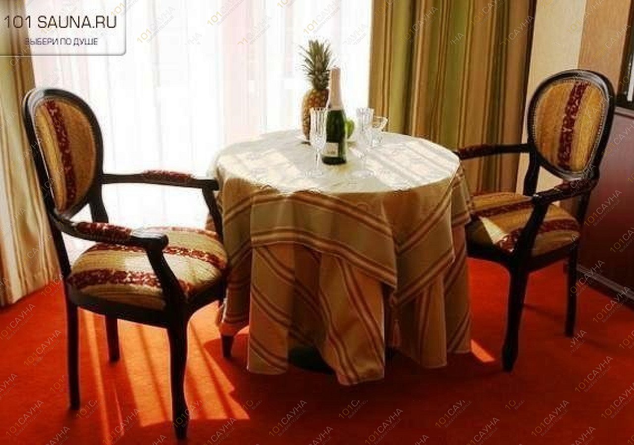 Предлагаем выбор услуг: современный бассейн с гейзером и противотоком, сауна, работающая в русском и финском режимах, турецкая баня, представляющую собой аромапаровую комнату, купель с ледяной водой, зал для отдыха: мягкий кожаный диван, стол, телевизор, музыкальный центр..