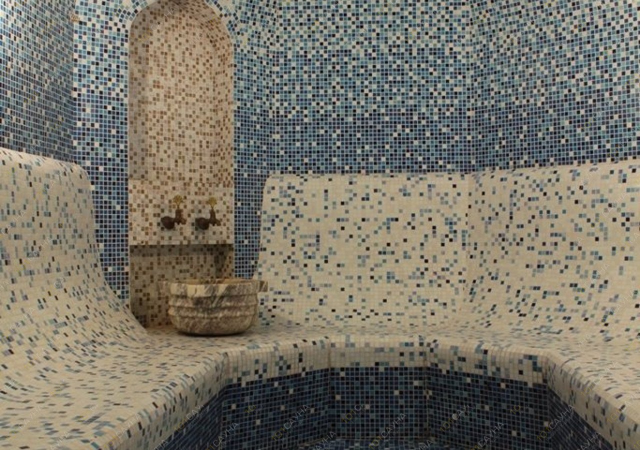 - турецкая баня, представляющая собой аромапаровую комнату, выполненную из мелких мраморных плиточек;