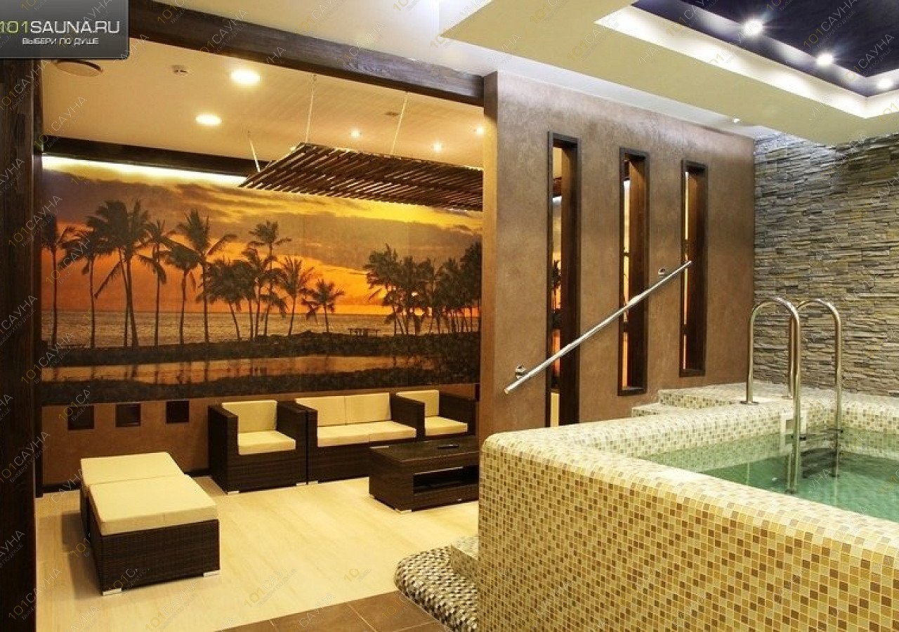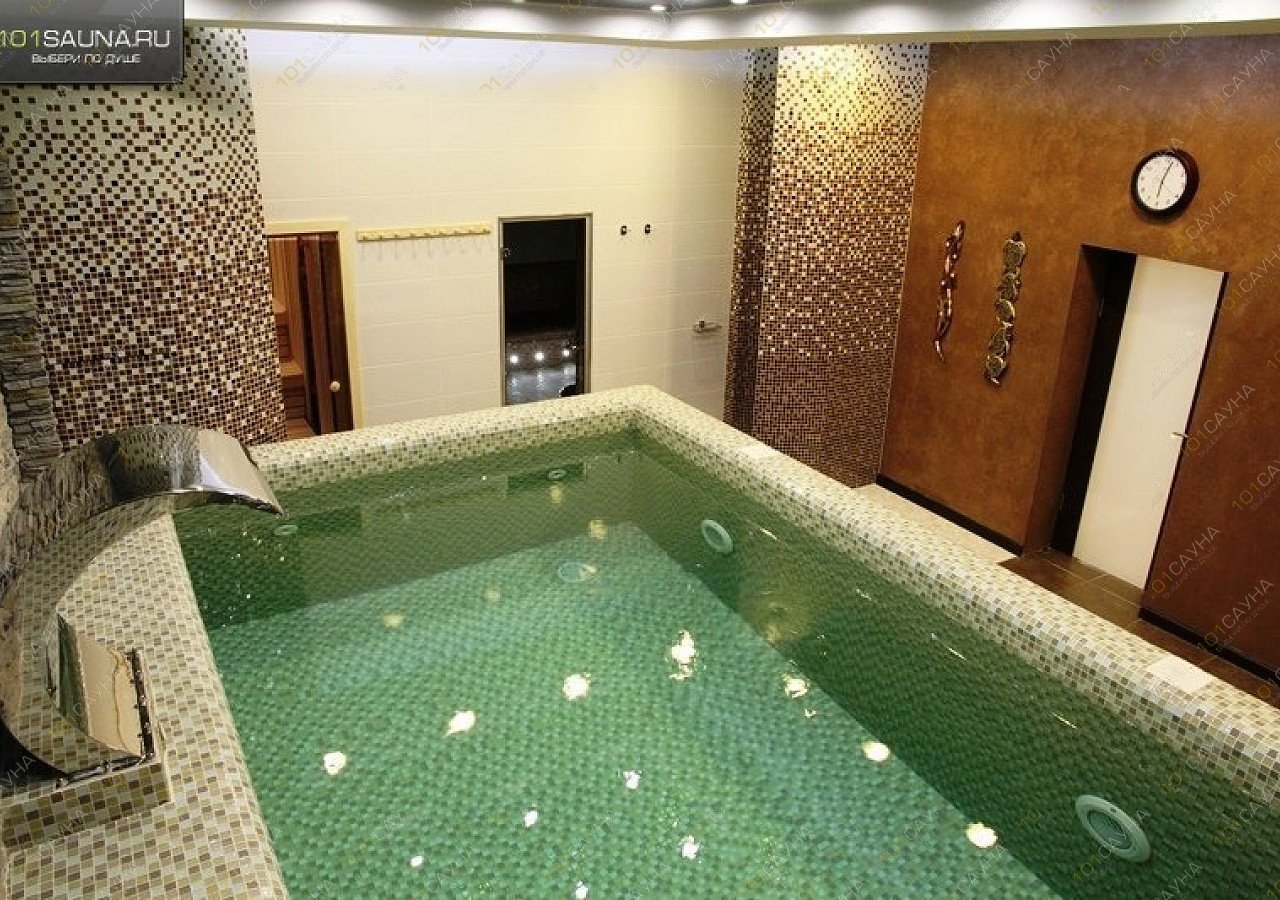 В бассейне работает тропический душ, подсветка воды разными цветами. Для любителей закаливания при выходе из сауны оборудован обливник.
