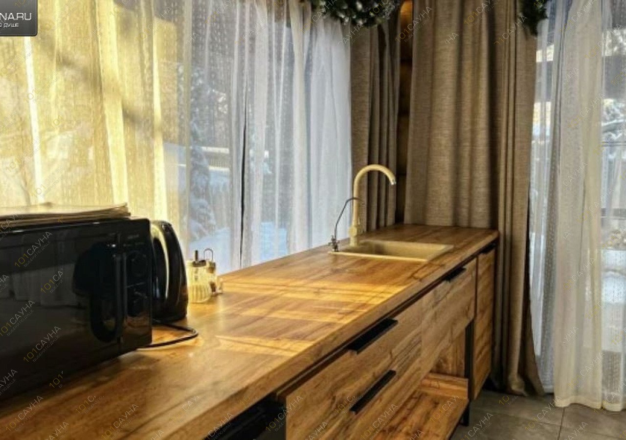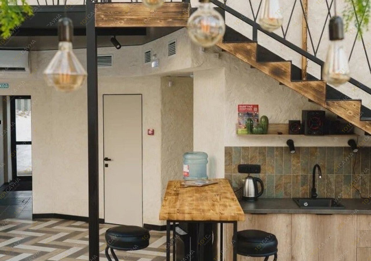 Интерьер в стиле лофт, светлая цветовая гамма, сауна, бассейн (6х2,5 метра), 2 удобные раздевалки, кухня (холодильник, питьевая вода, чайник, микроволновая печь), санузел, душевые кабины, комната отдыха с диваном, музыкальный центр, караоке. Также предоставляется бесплатно: Шампура; Фен; Тазики+ковшики; Мыло.