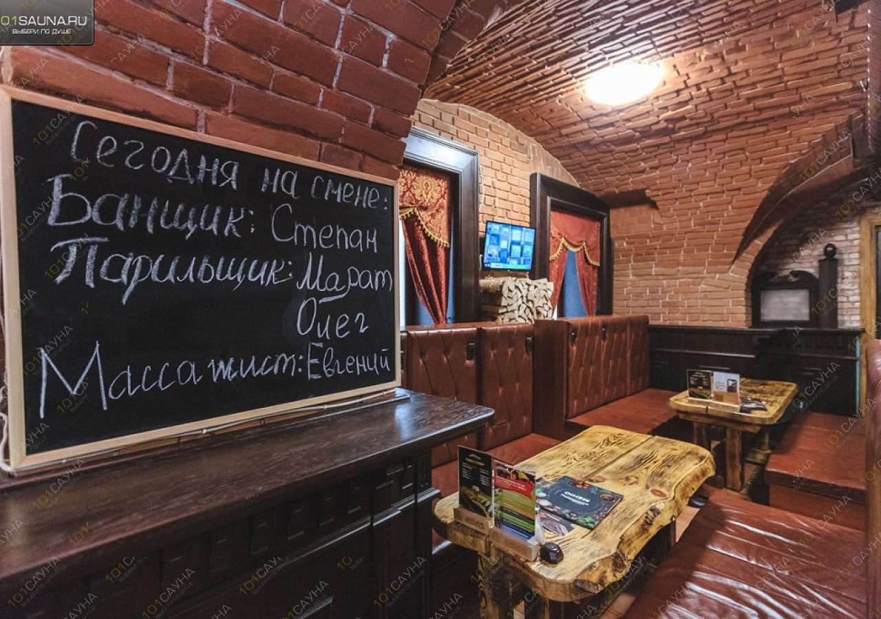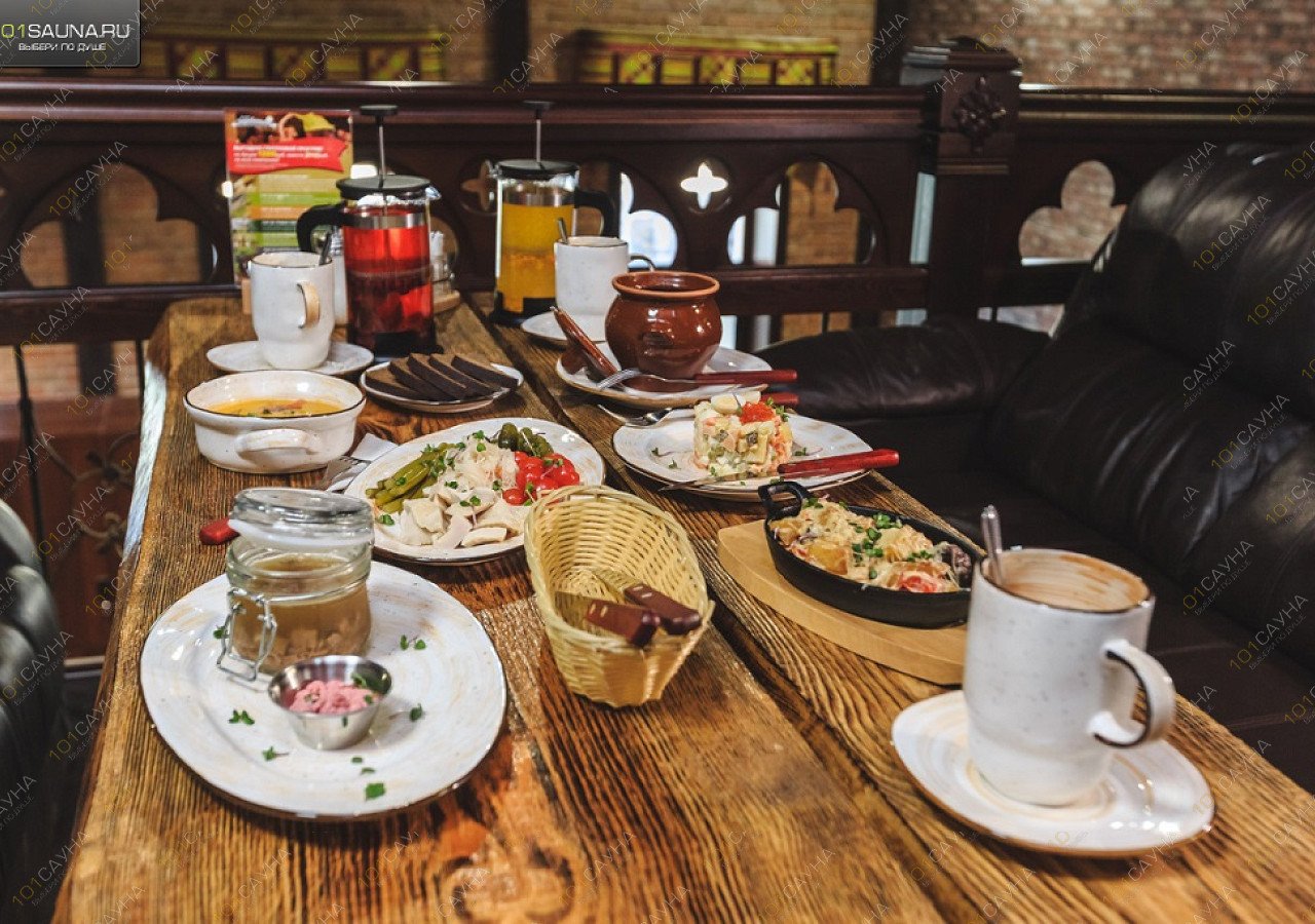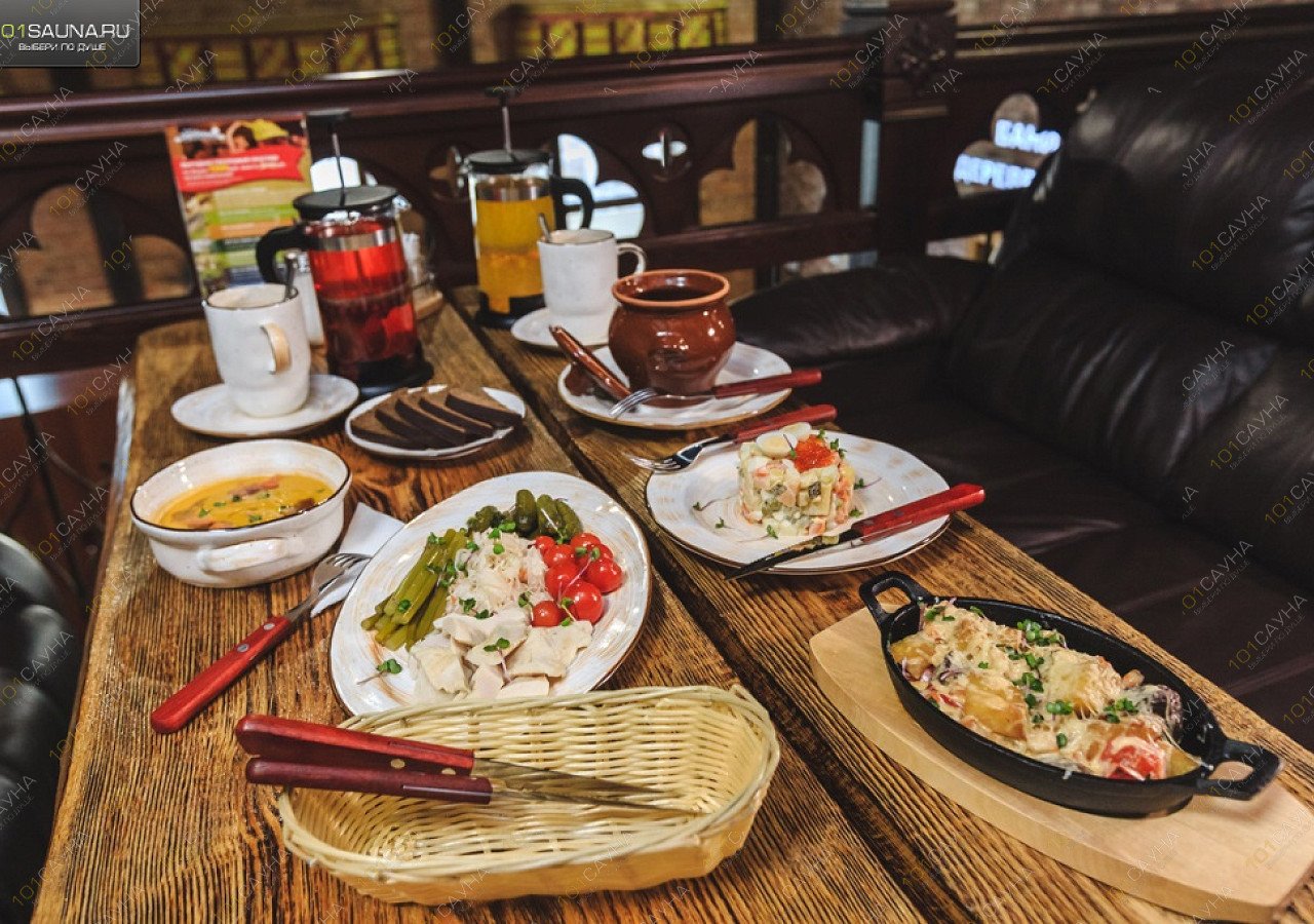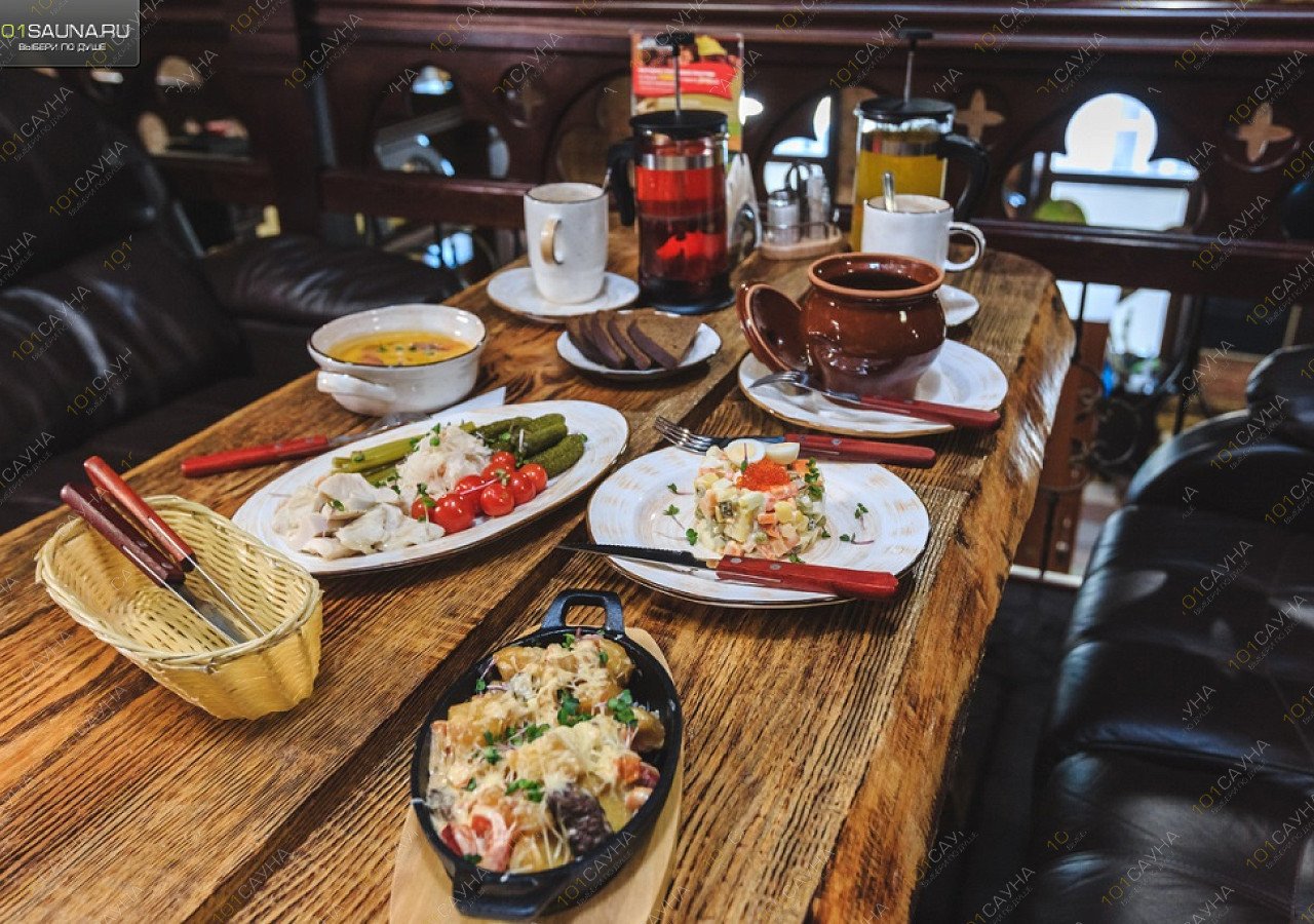 Предлагаем выбор услуг: купель, зона отдыха, ТВ, комната отдыха, ресторанное меню.