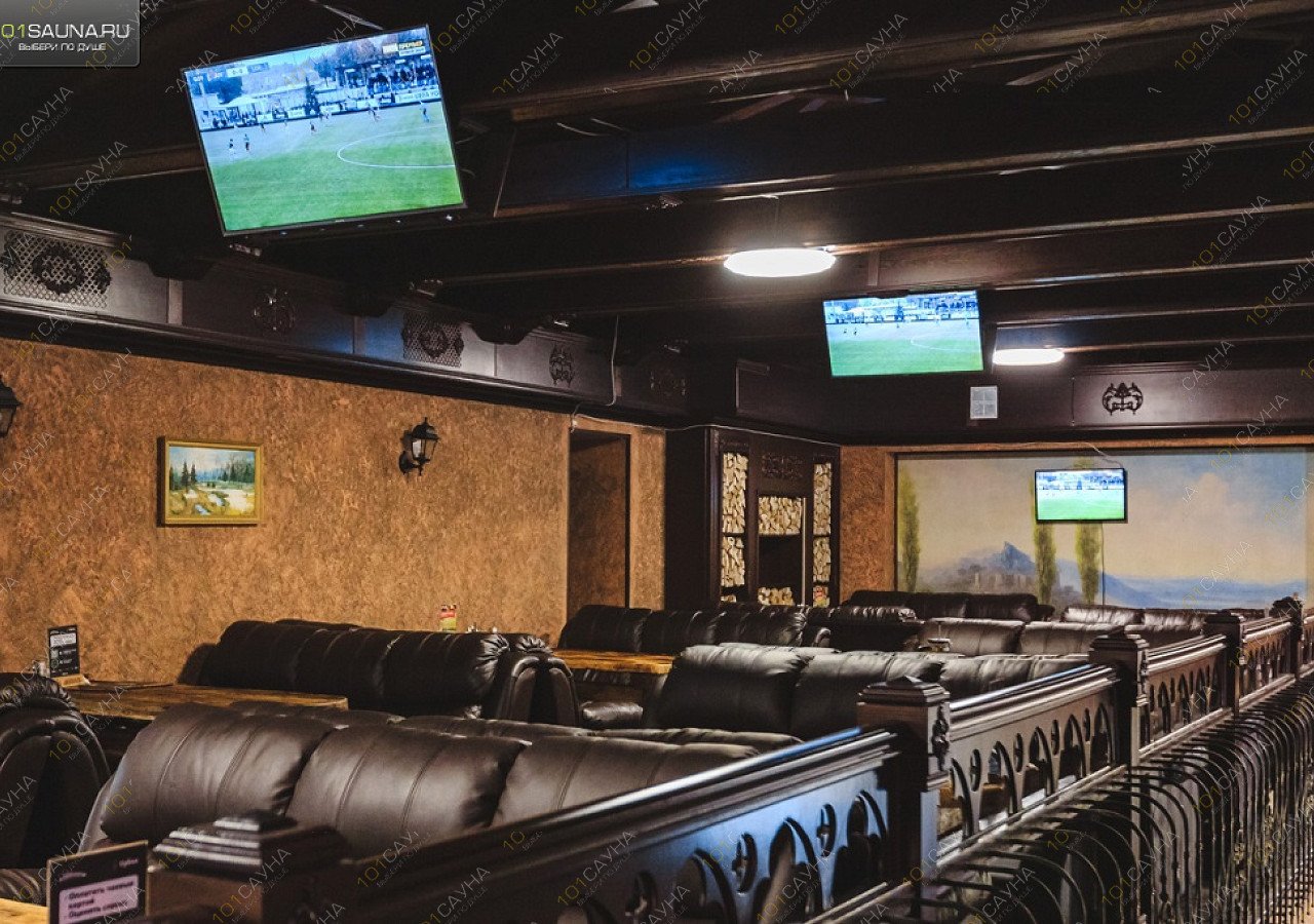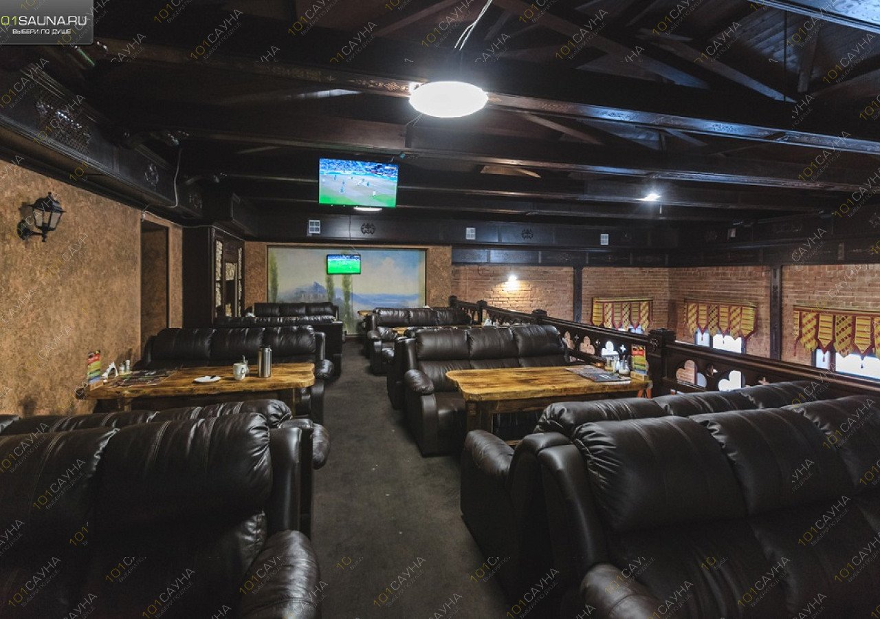 Зал отдыха с авторскими мягкими сидениями из натуральной кожи и массива дерева. Полное ресторанное обслуживание, профессиональные парильщики и массажисты. Просторная общая парная на дровах. 2 Парные для индивидуальных парений.