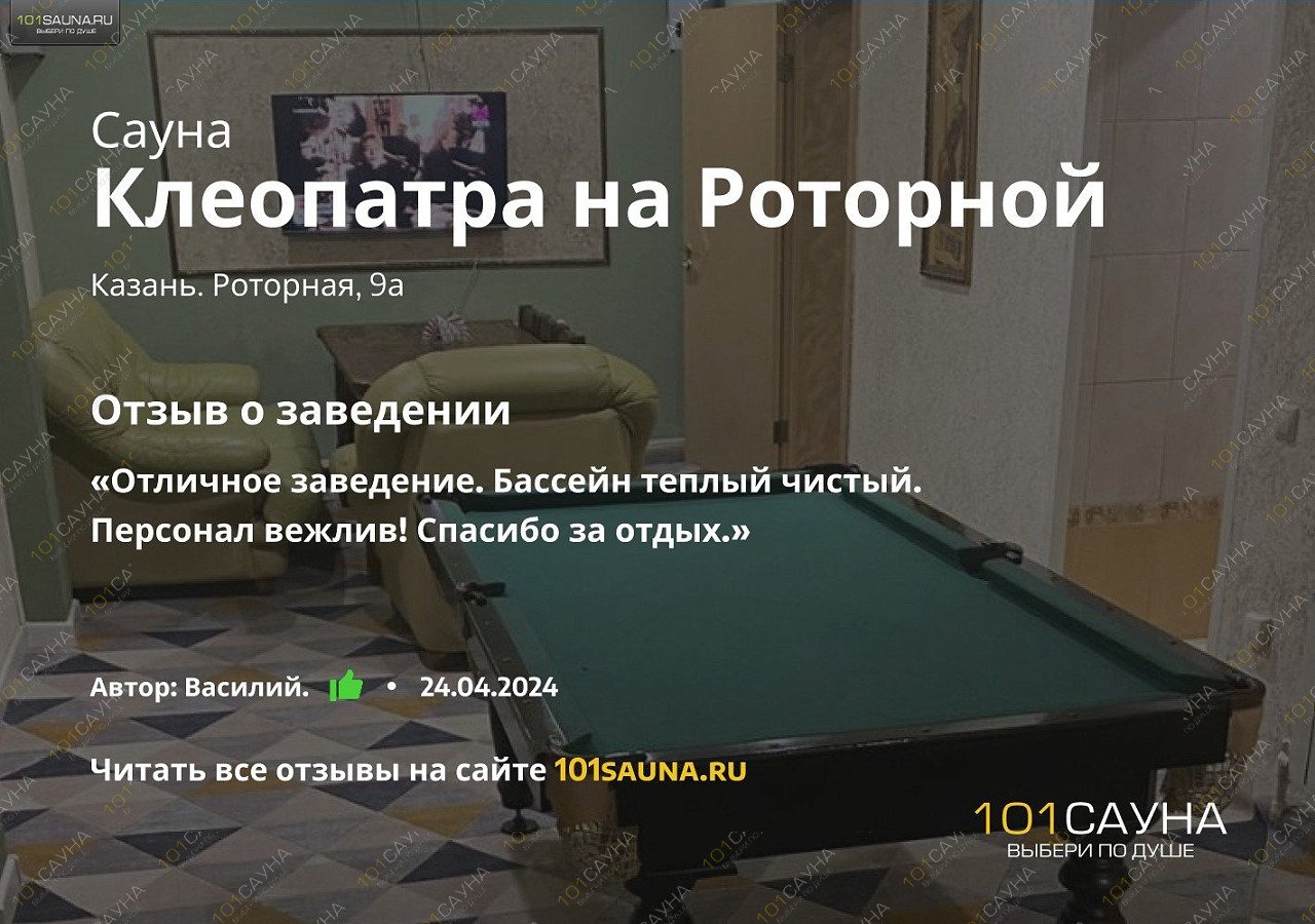 Администрация заведения "Клеопатра на Роторной" просит Вас содержать в чистоте арендуемый номер или зал.