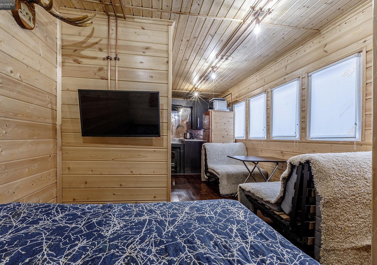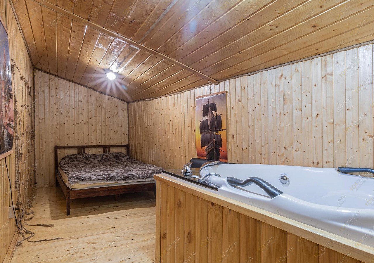 Дом 30м2 с двухспальной кроватью, ТВ, большим джакузи, кухней и собственным двориком с мангалом. И, конечно же, баня на дровах!