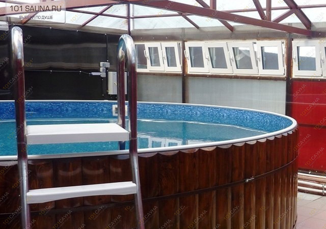 Предлагаем также финскую сауну с теплым бассейном размером 2,5 м x 4,5 м, гидротурбиной и залом на 8 и более человек.