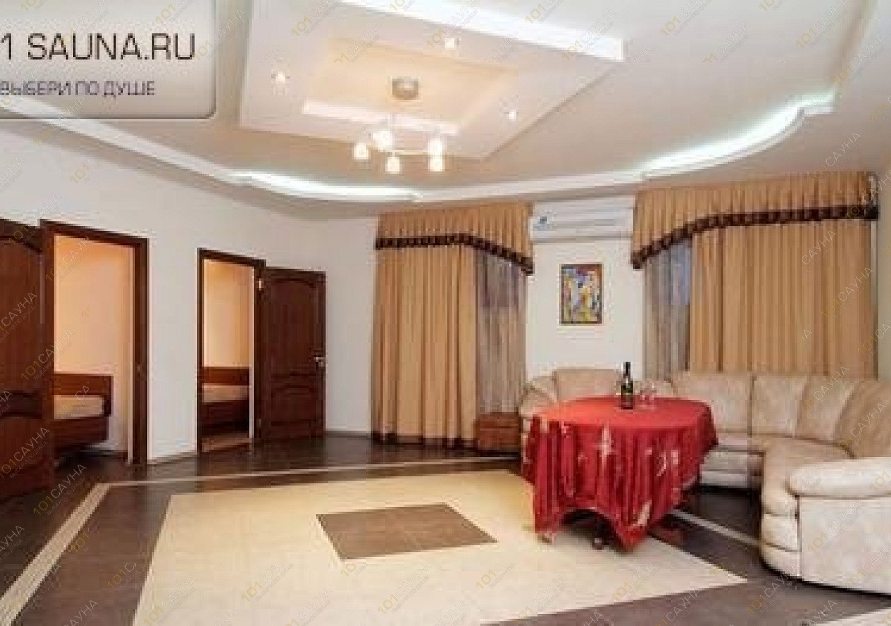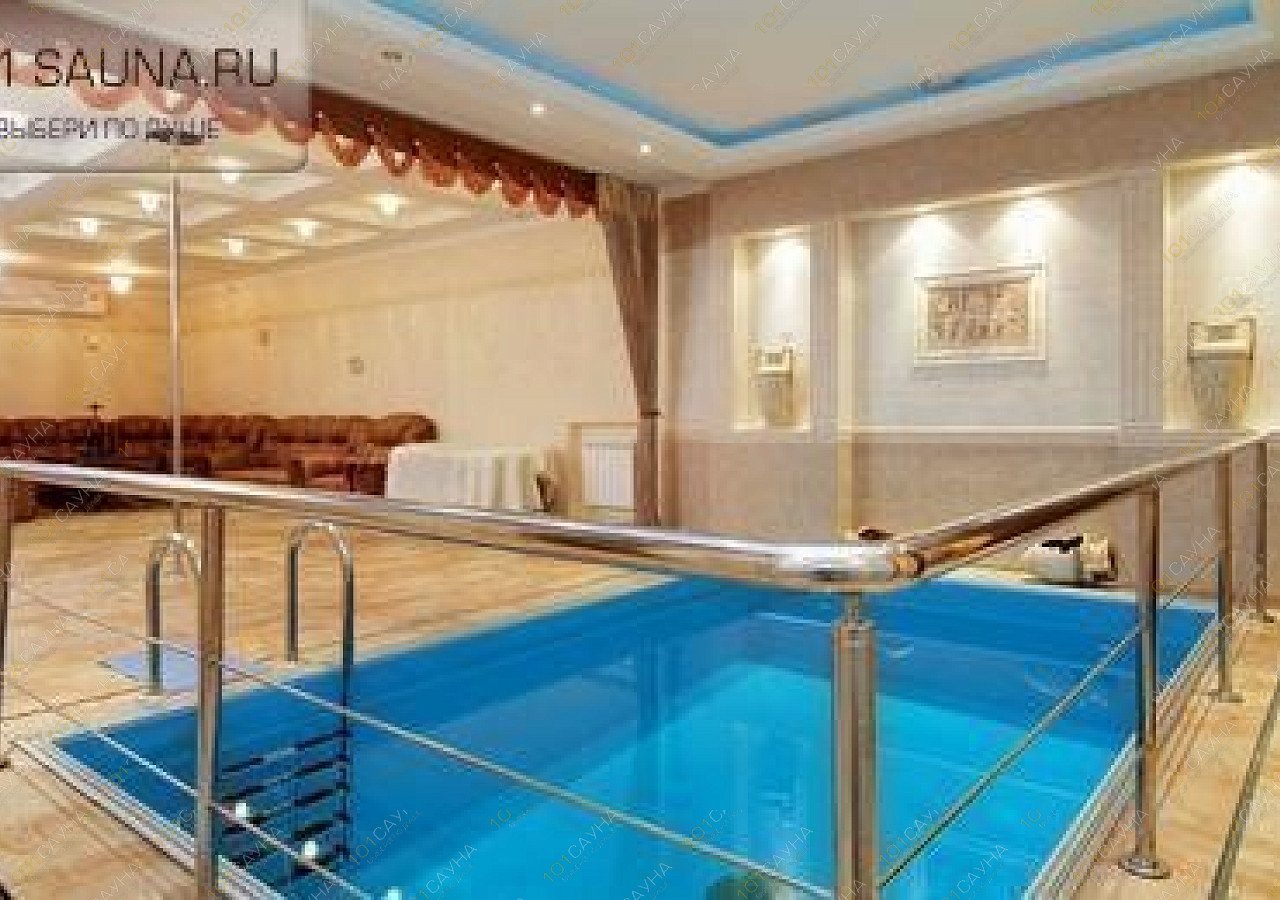 Вмещает 12 человек, тут можно повеселиться в большой оживленной компании, поплавать в просторном бассейне и погреться в русской парной