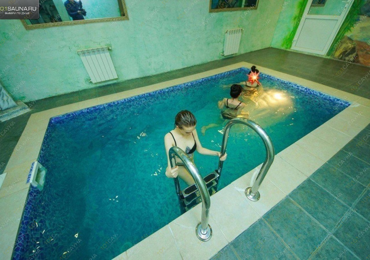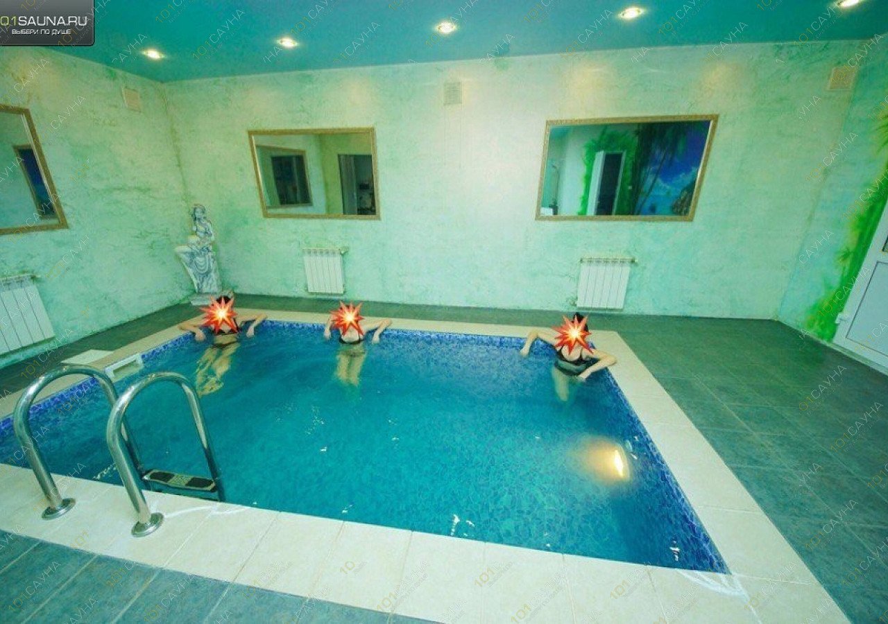 В сауне имеется большая парилка, температура нагрева до 110 градусов. Чистый, глубокий бассейн, размер 3Х6м, включающий функции подогрева, подсветки и гидромассажа.