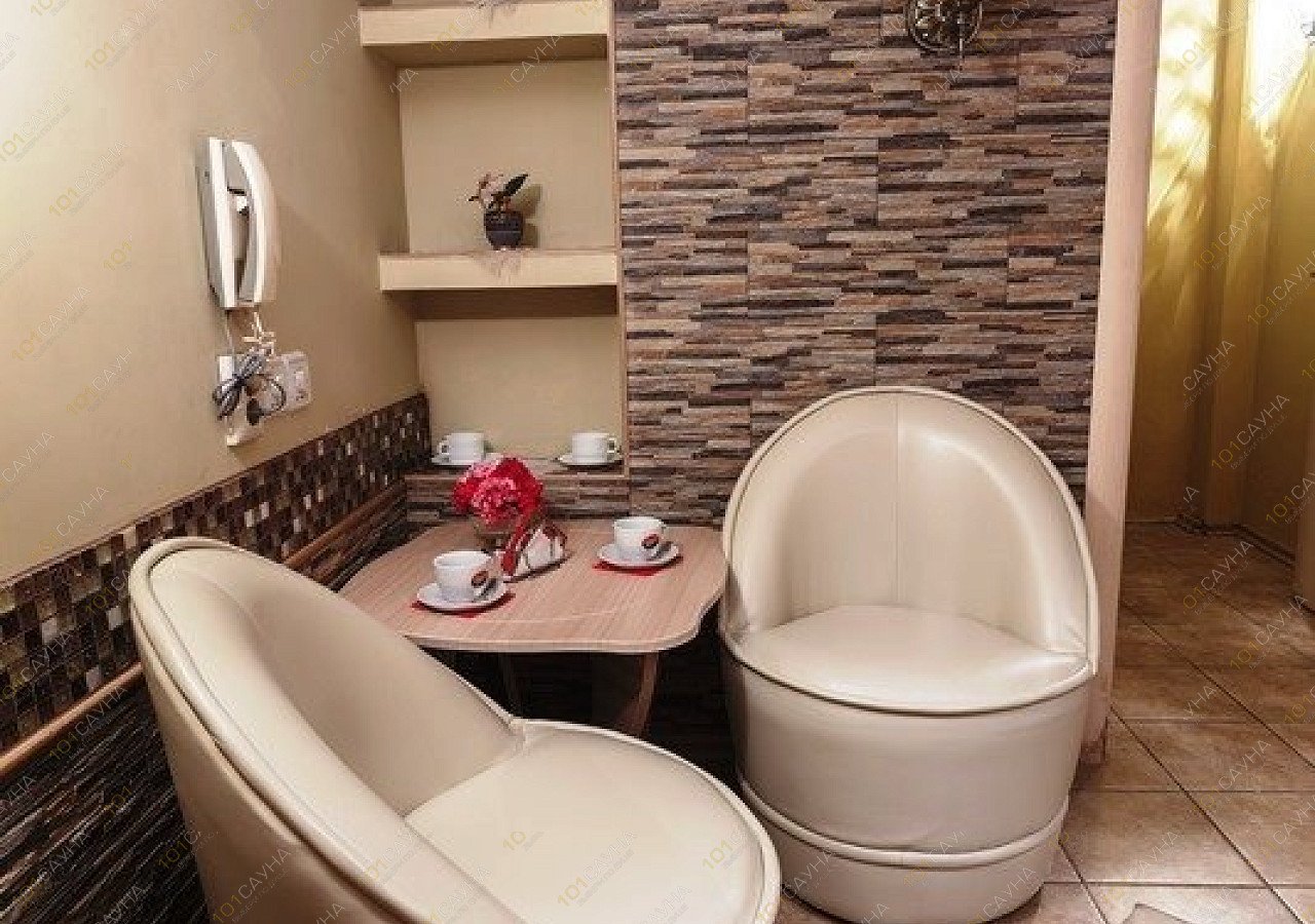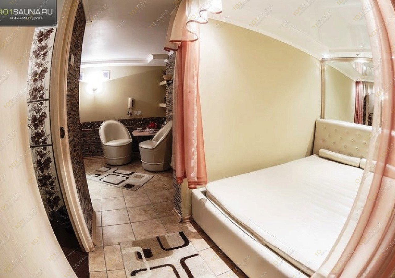 В номер входит: (уютная мягкая зона, телевизор, DVD, караоке), парная с вениками, красивый бассейн с подсветкой, обливное ведерко, искусственный водопад.