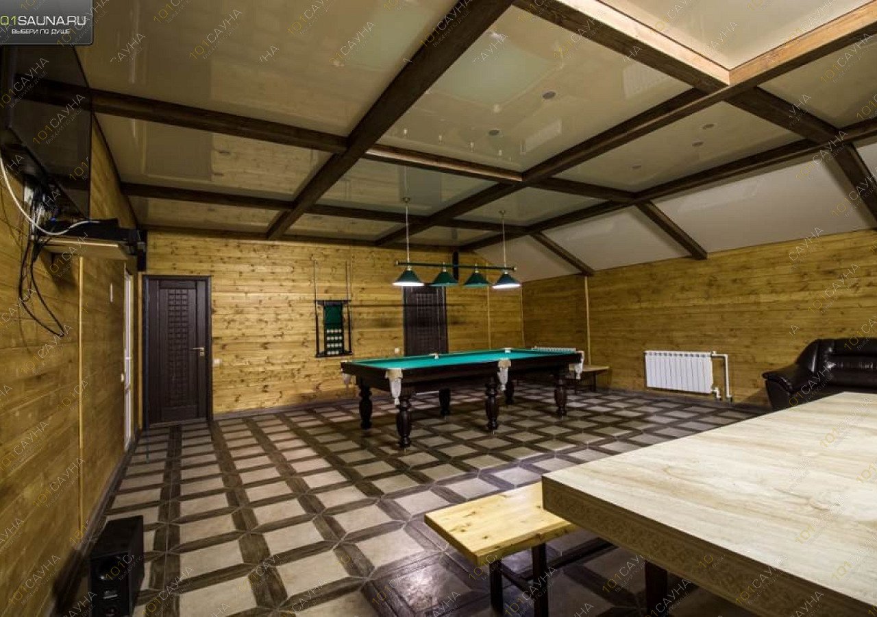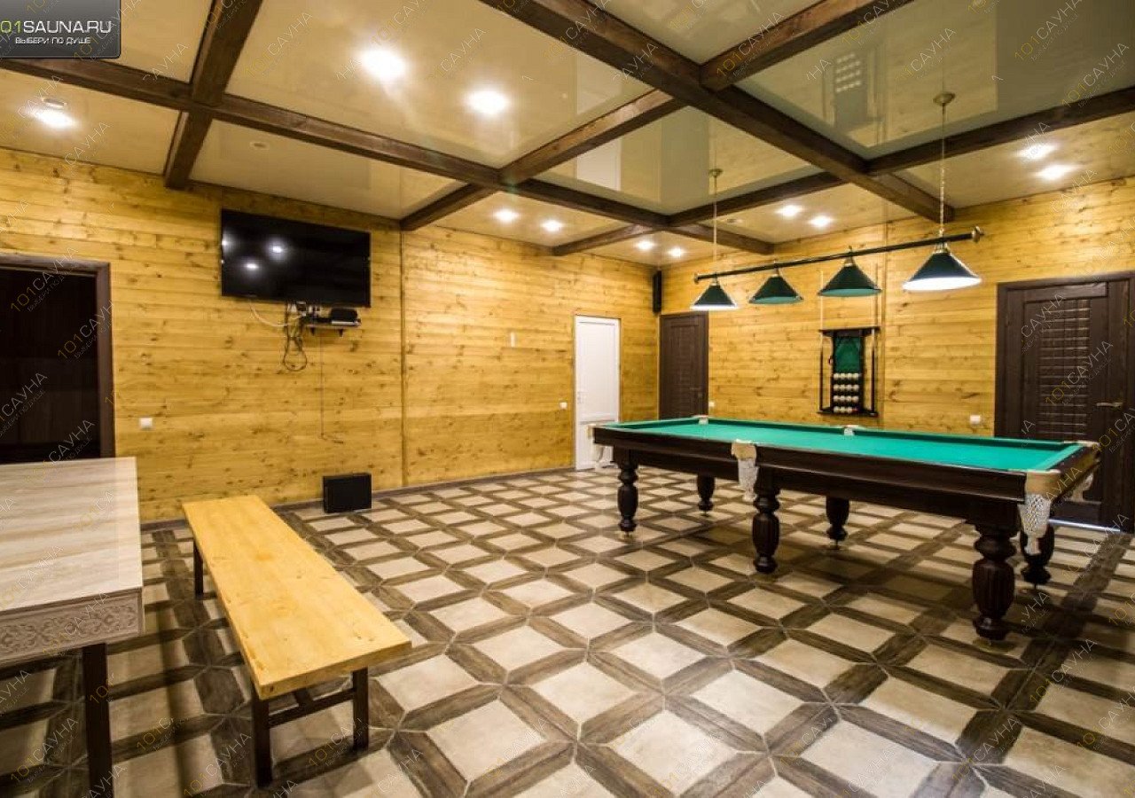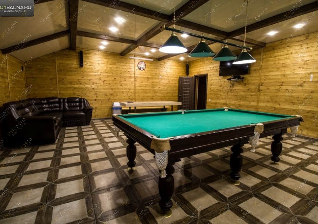 Предлагаем выбор услуг: бассейн, зона отдыха со столом для гостей, обливное ведро, ТВ, караоке, бильярд, настольный теннис, комната отдыха, кухня, холодильник.