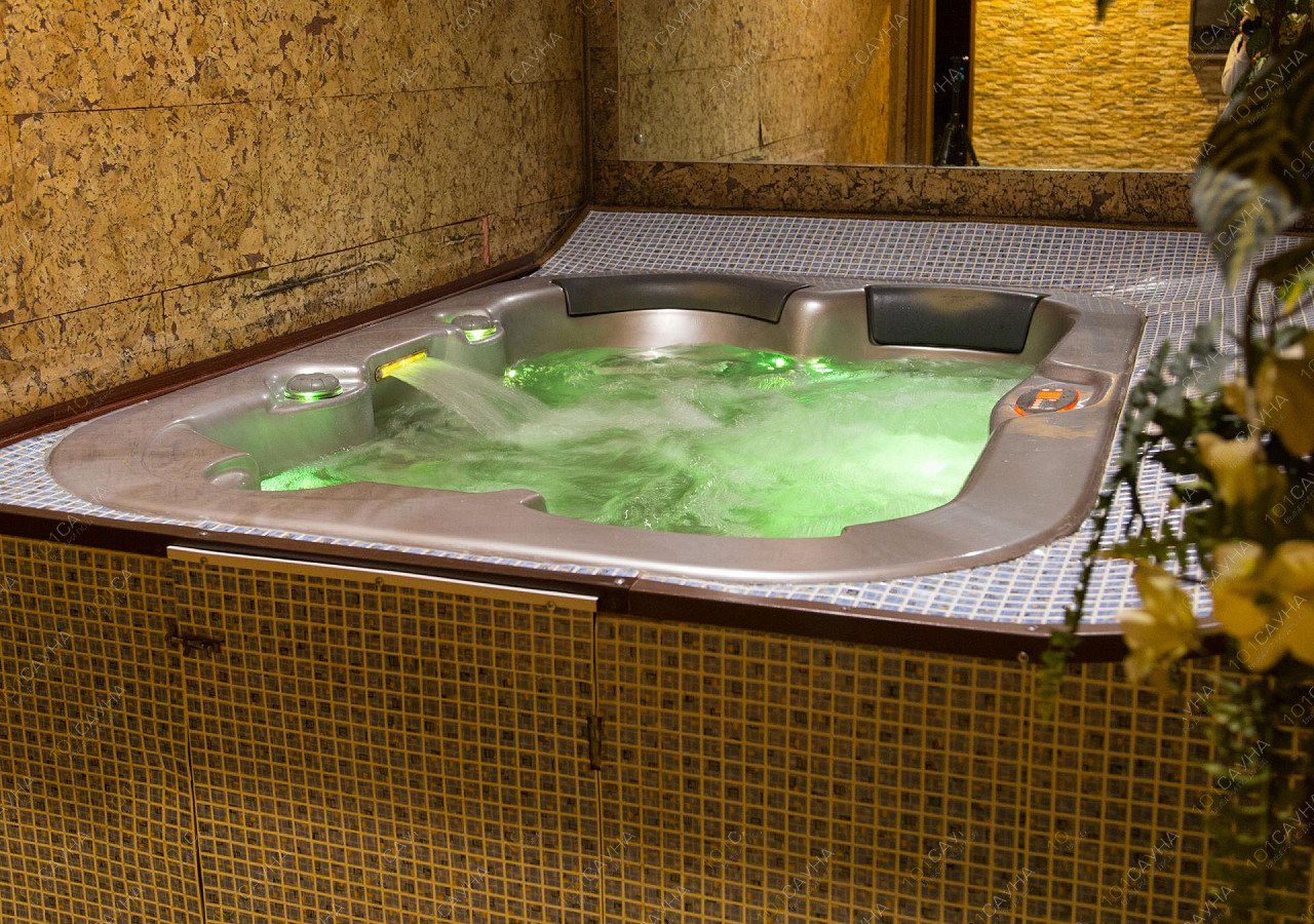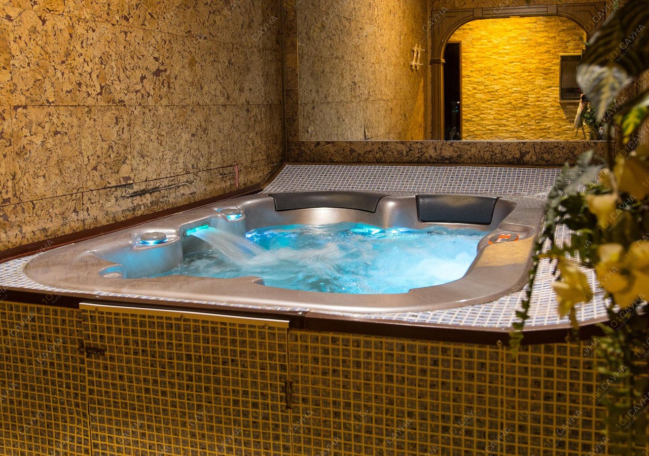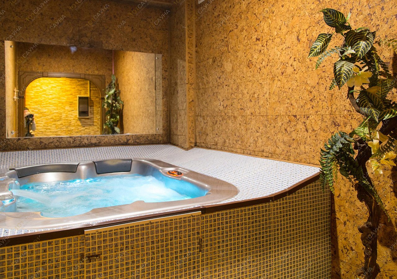 Гостей помимо рассчитанной на четверых человек финской парной ждет джакузи с эффектной подсветкой, комнаты релаксации и банкетная зона с мягкой мебелью.