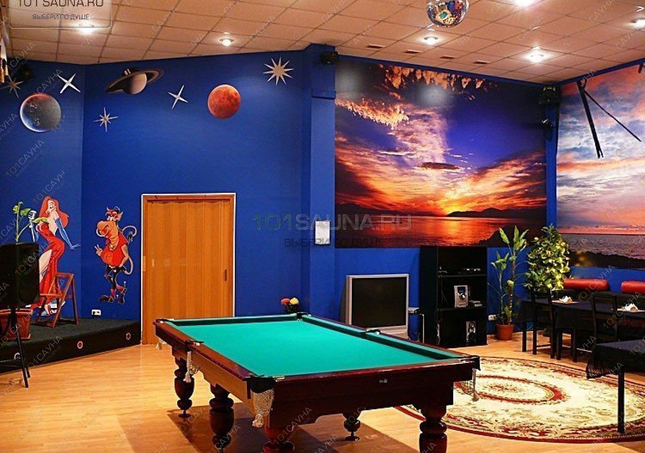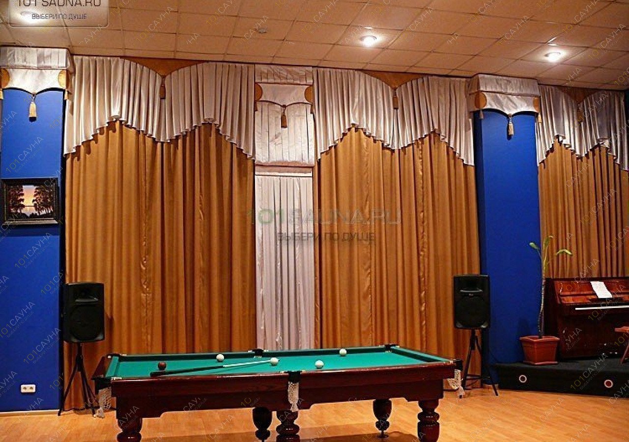 Предлагаем выбор услуг: банкетный зал с бильярдным столом, услуги банщика-парильщика, выбор веников, бар.