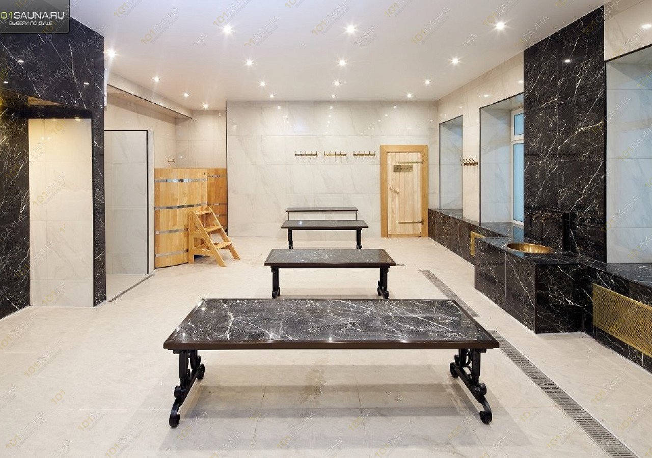 парной с профессиональной электро-каменкой, купелью с ледяной водой, джакузи с гидромассажем, комнатой отдыха, TV, WI-FI и лаунж зоной для проведения торжеств.
