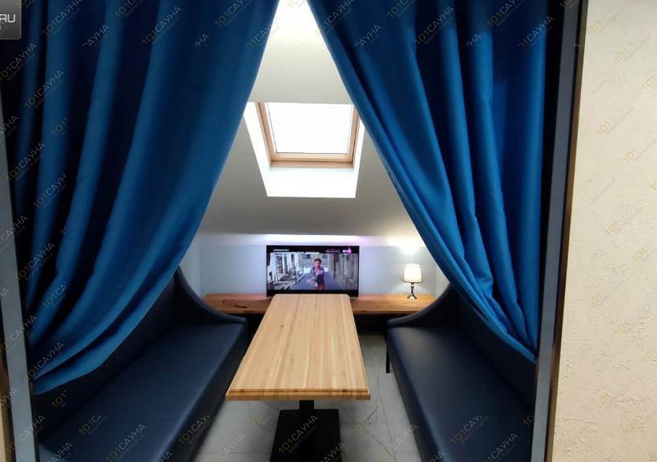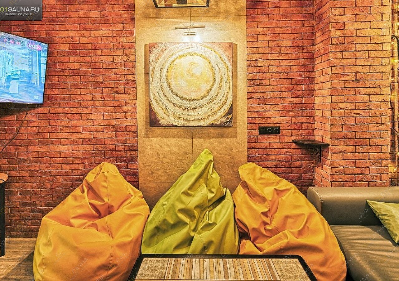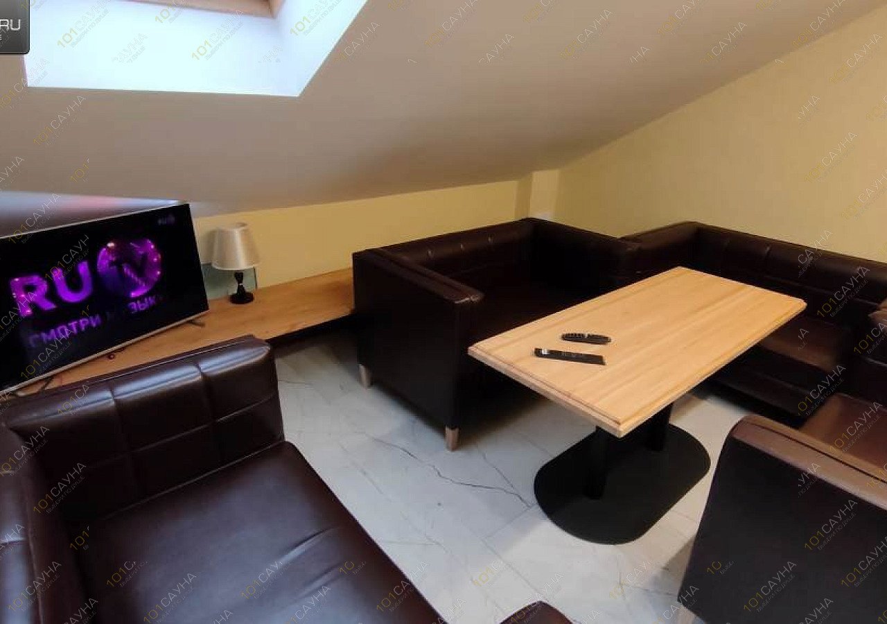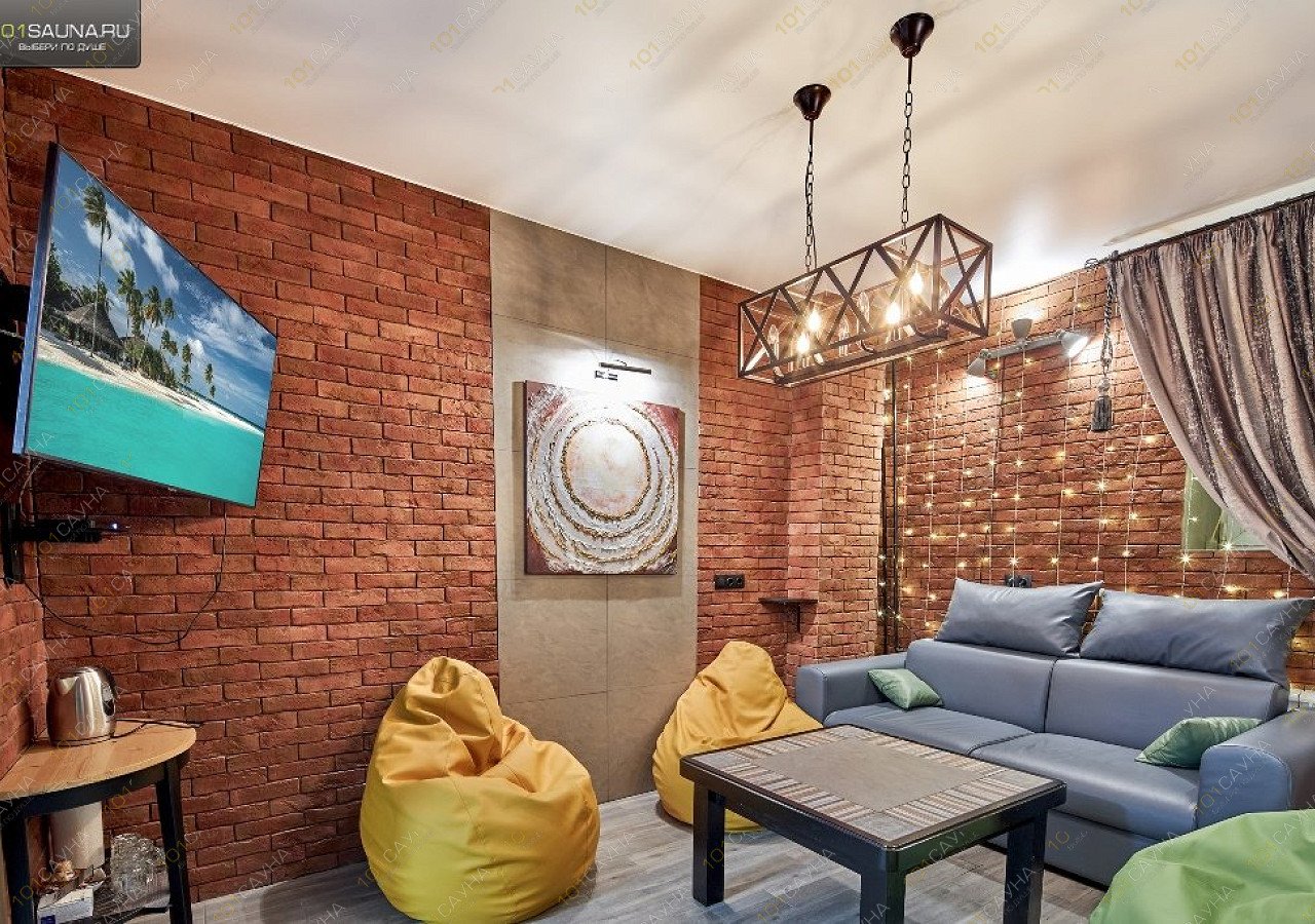 Сауна в стиле лофт на 6 человек, оборудована купелью, большим плазменным телевизором, зоной отдыха. У нас работает ресторан, где вы можете заказать любые блюда, разливное пиво и крепкий алкоголь.