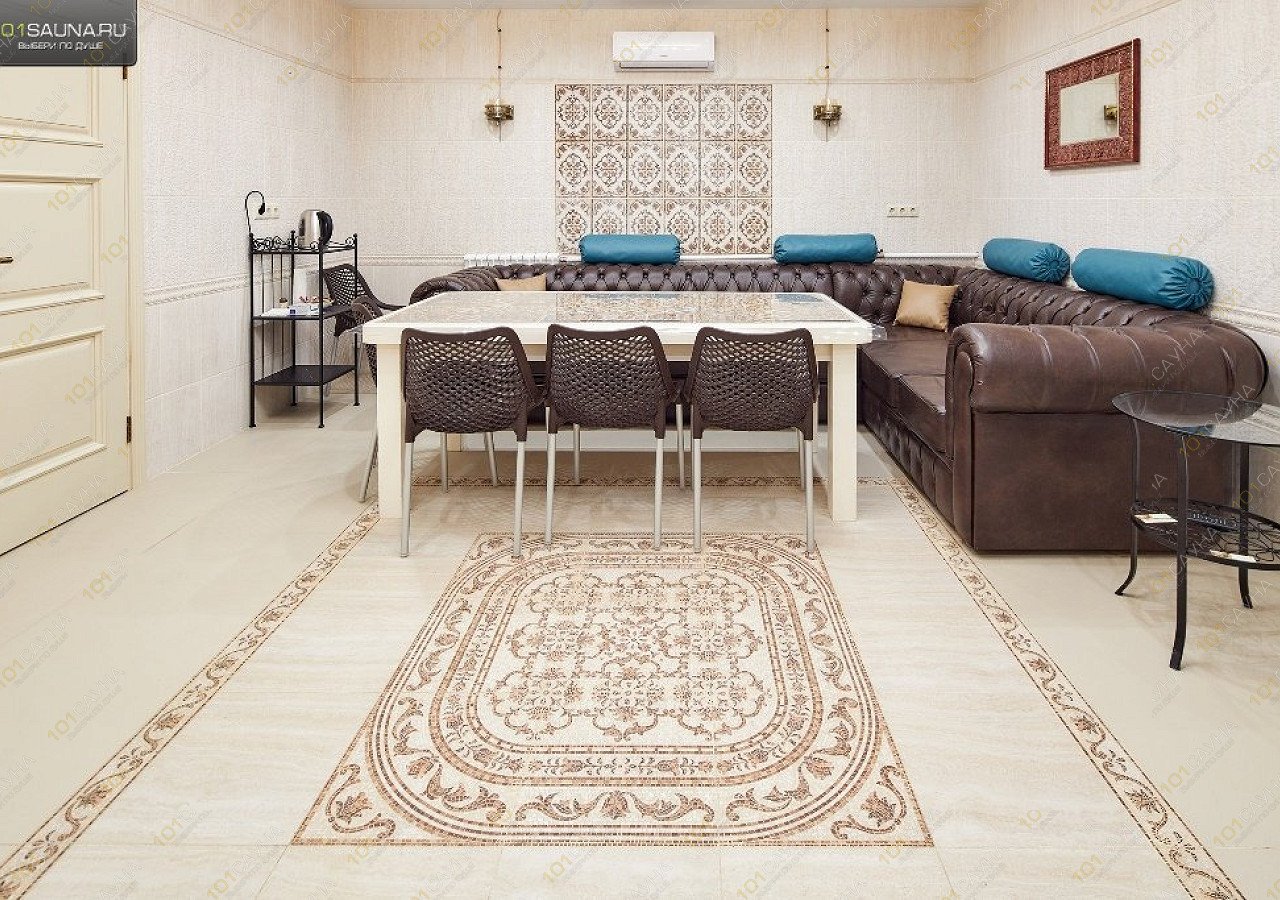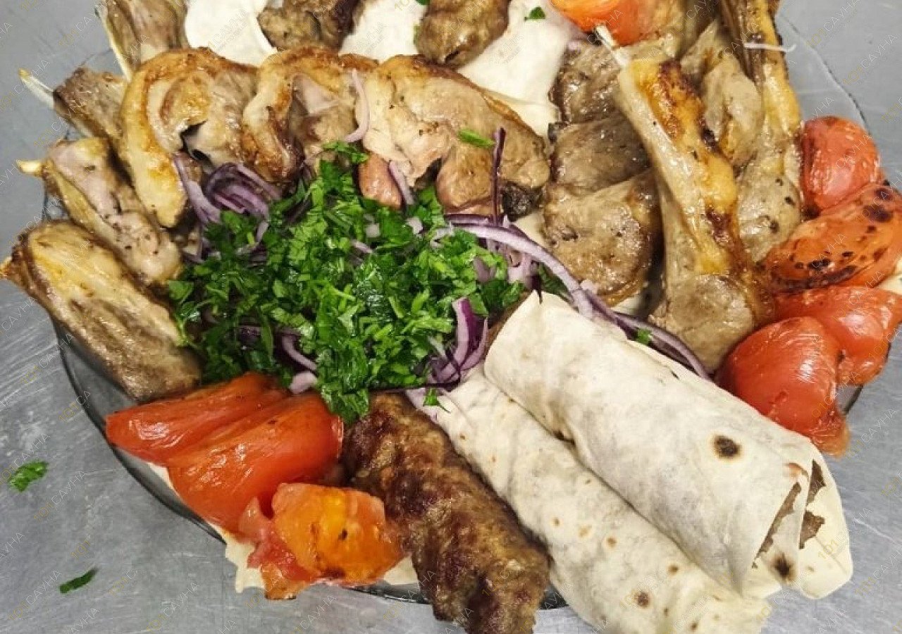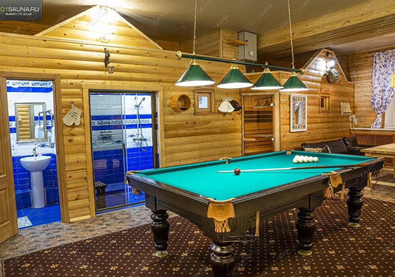 Сауна в стиле гжель с русским бильярдом и зоной отдыха на 8 человек. У нас работает ресторан, где вы можете заказать любые блюда, разливное пиво и крепкий алкоголь.