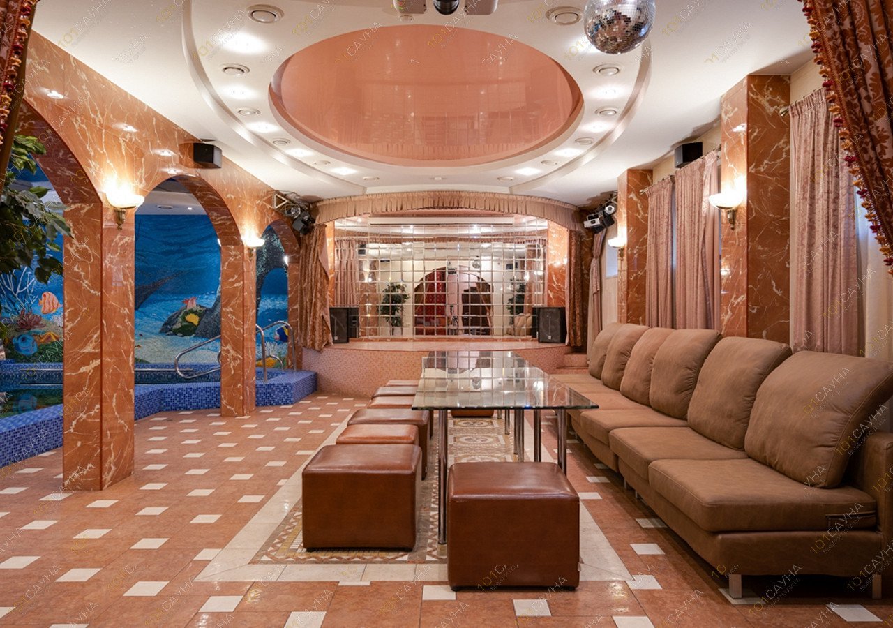 Просторный зал, вмещает до 20-30чел. (260 кв.м). Идеально подойдет для празднования дня рождения и корпоратива. Здесь вы найдете: финская парная, аква-зона с большим бассейном,банкетный зал, сцена, караоке, зона отдыха