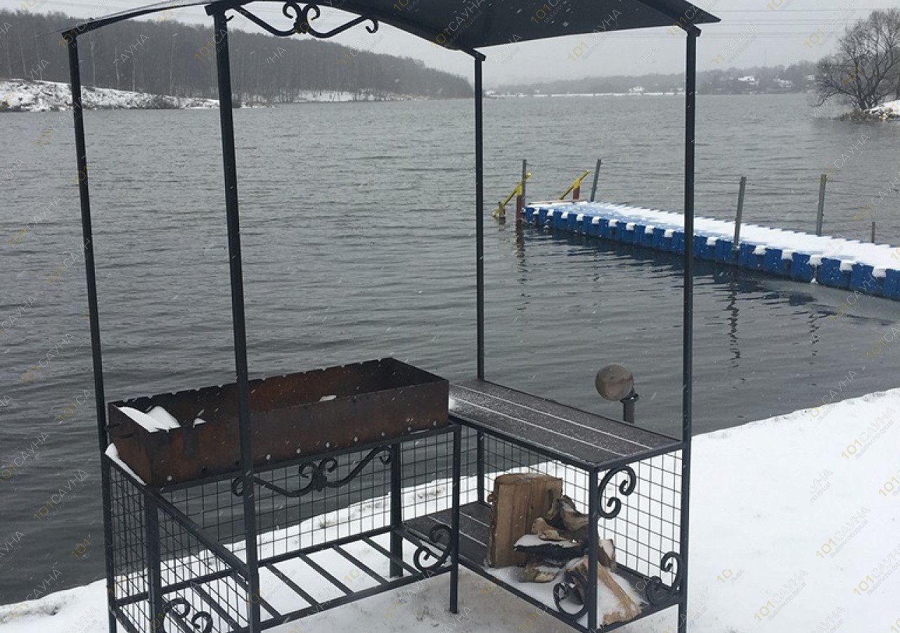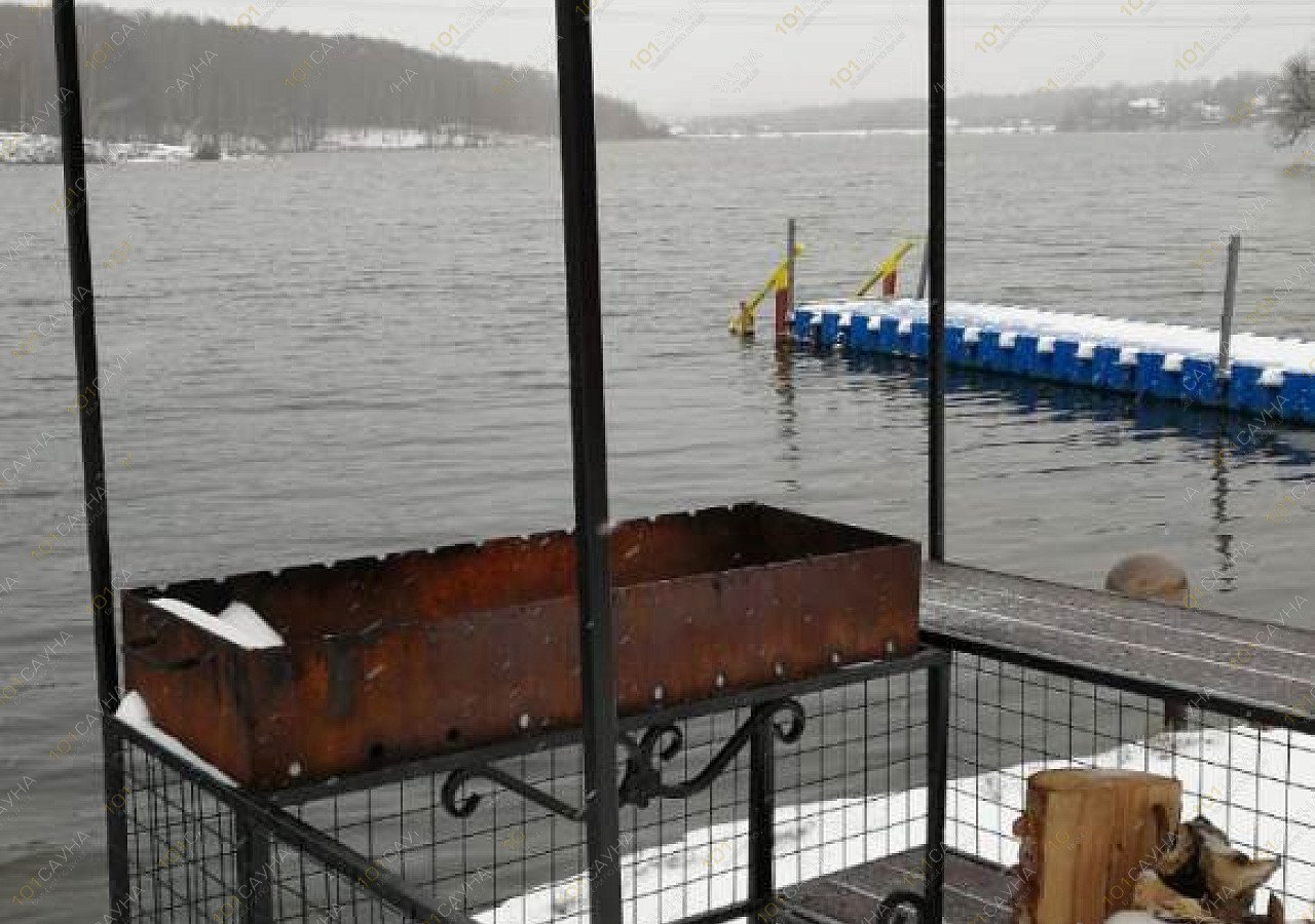 Отдельно стоящая отапливаемая и укомплектованная беседка на берегу водоема,с зоной барбекю, вместимость 8 человек.