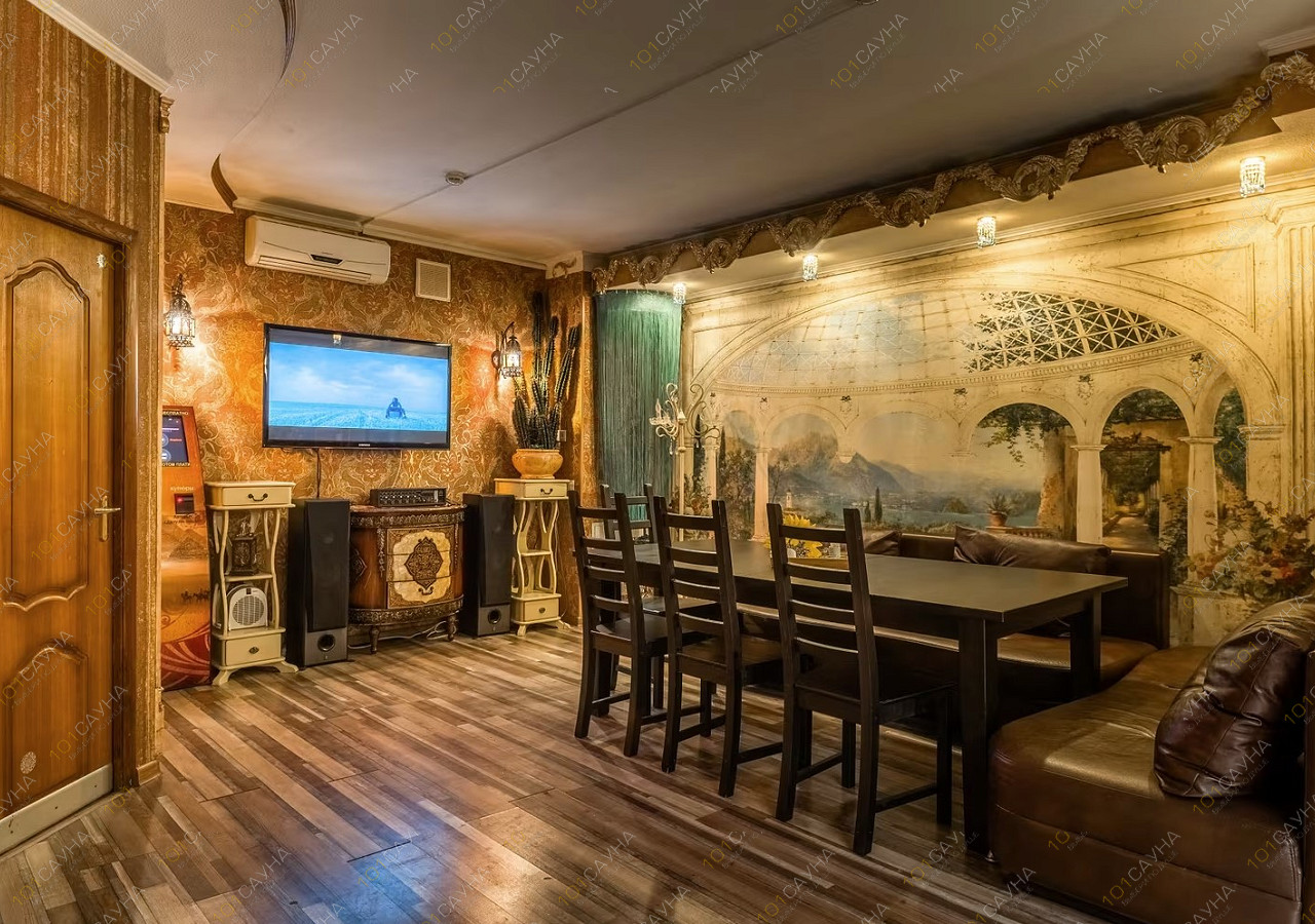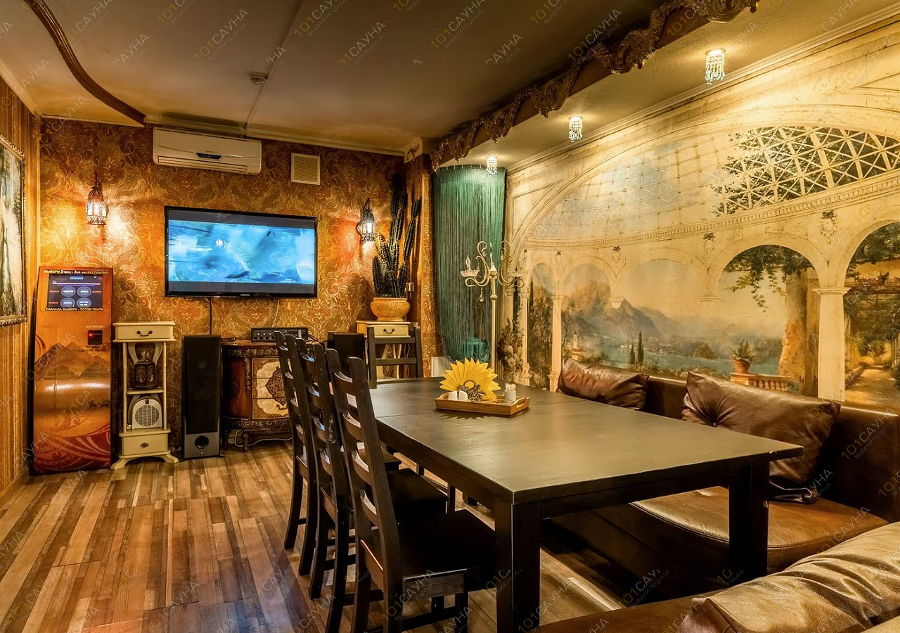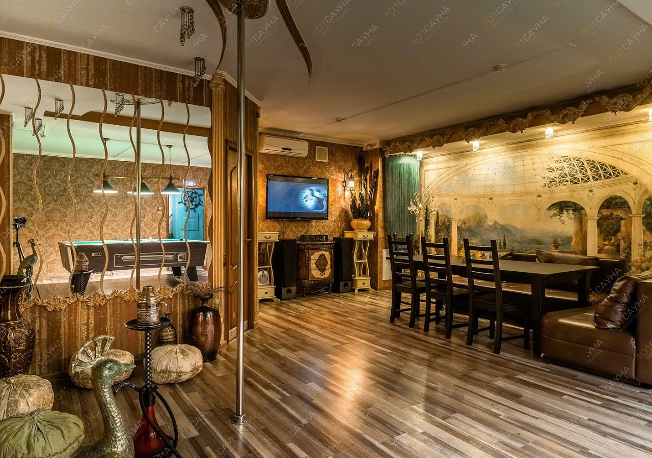 Предлагаем выбор услуг: бассейн с гидромассажем, зона отдыха со столом для гостей, ТВ, можно париться с вениками, комнаты отдыха, банные принадлежности.