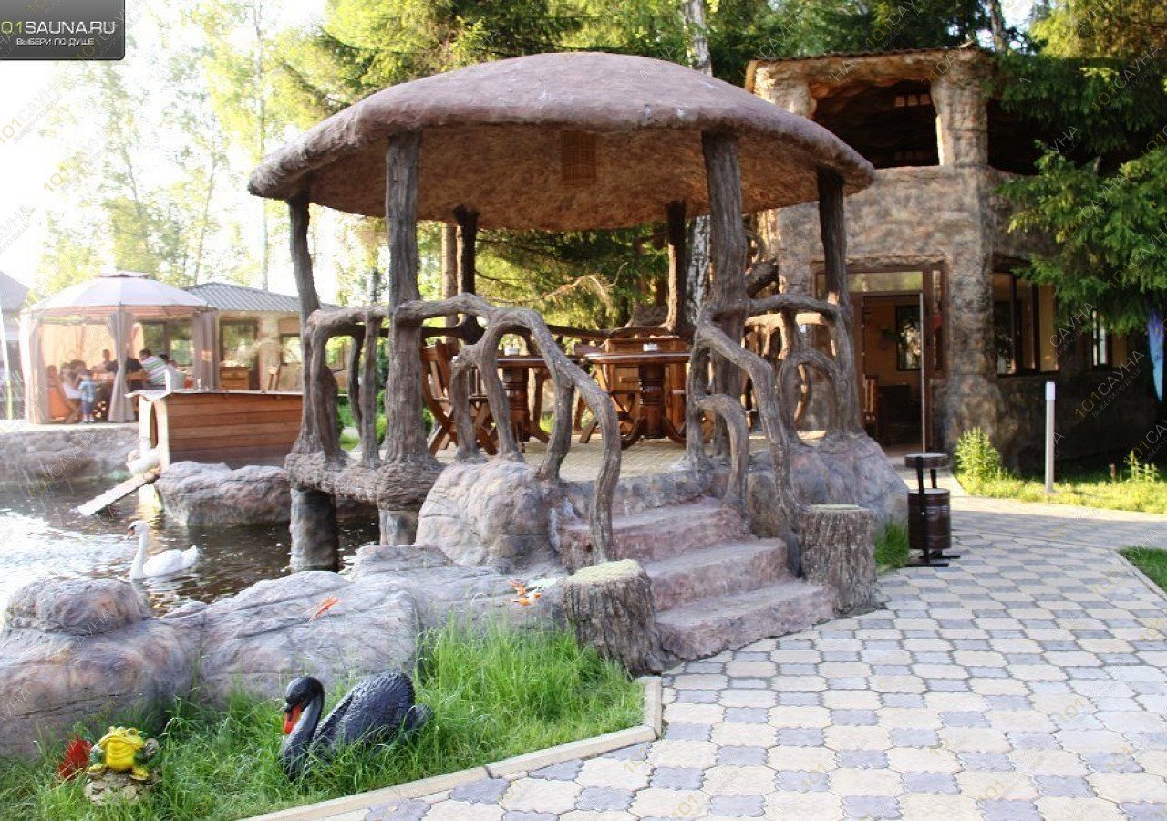 На территории: гостиница ресторан с банкетными залами зоопарк для детей большая зеленая территория с летними беседками и возможностью арендовать мангал, пруд с экзотическими рыбами и лебедями. пейнтбол, волейбольная площадка.