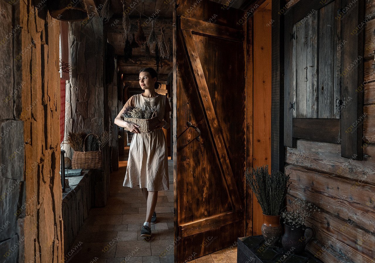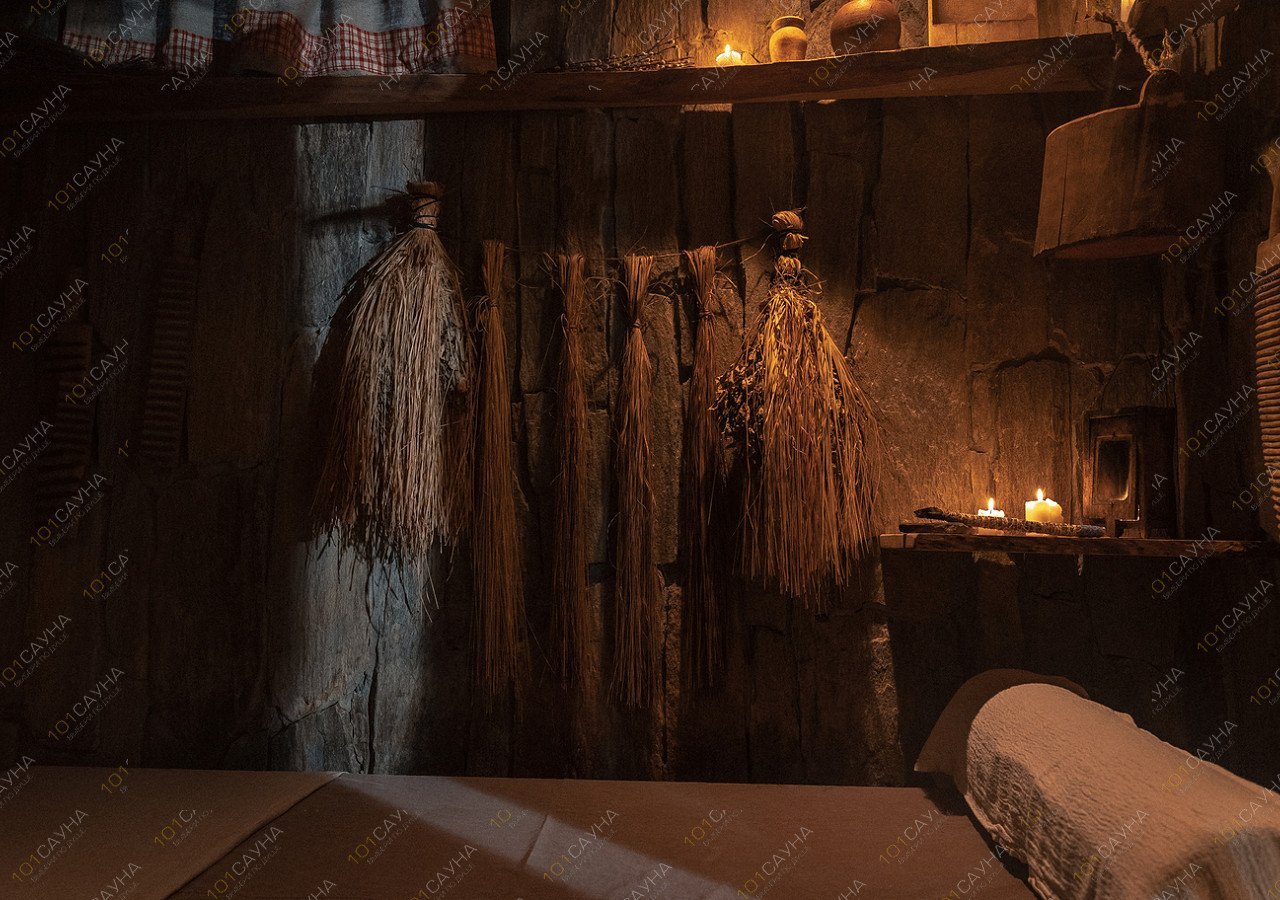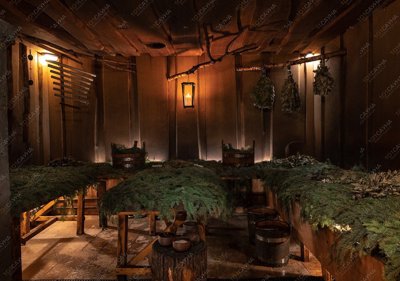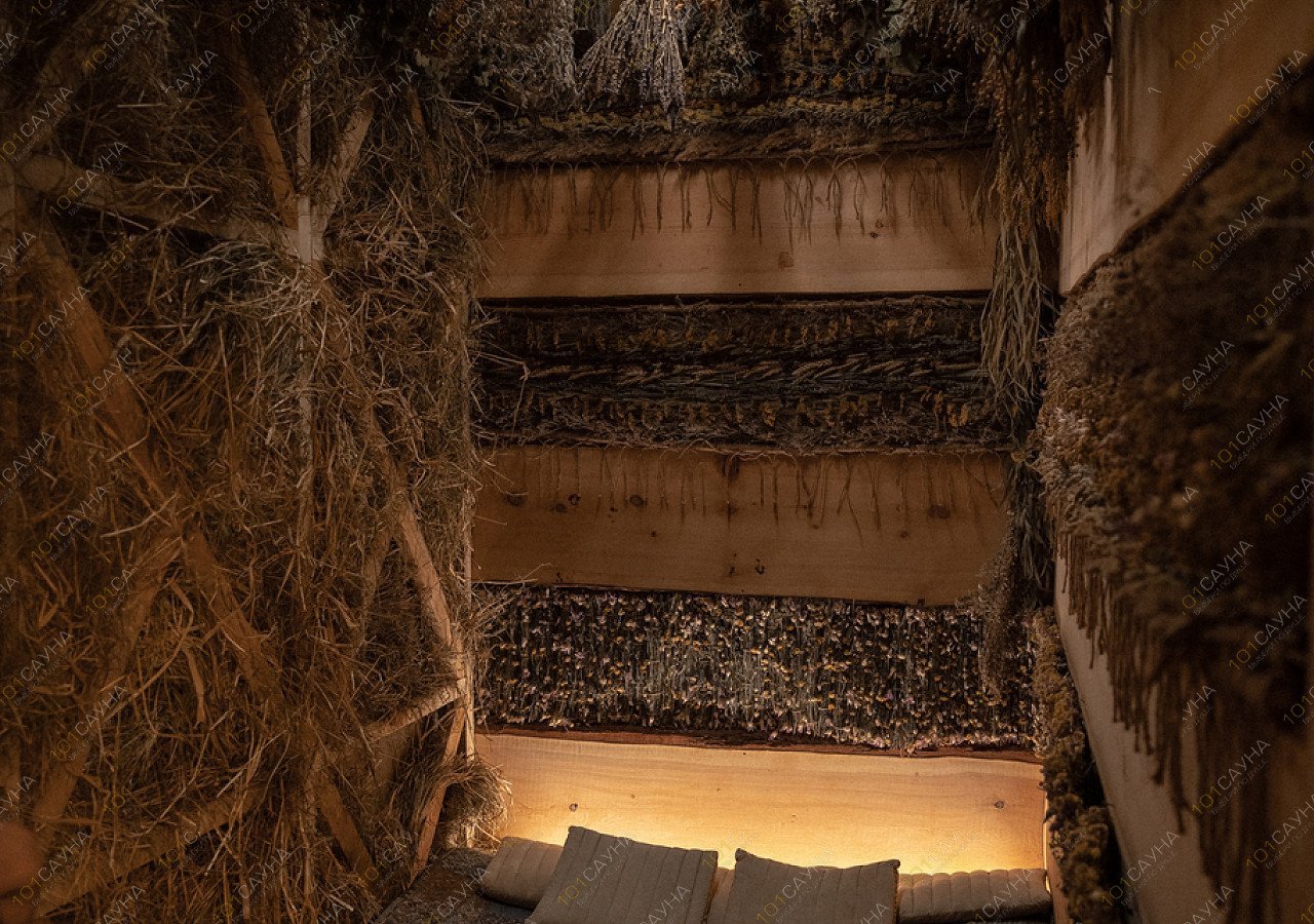 Пар на душице, мяте и горькой полыни сочетается с запечатанными в стенной копоти ароматами берёзы и полыни под звуки деревни и живых инструментов — цимбало и ботало.