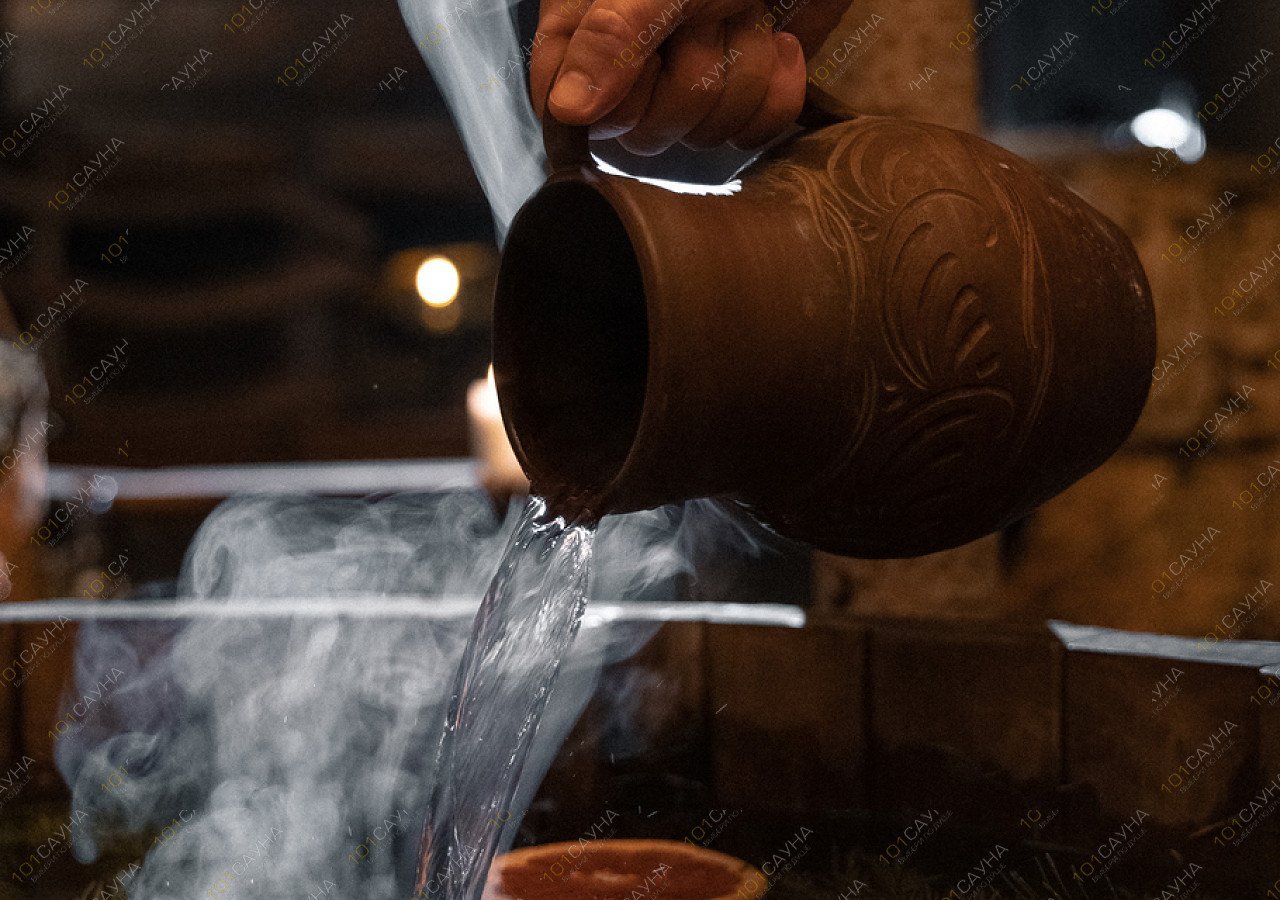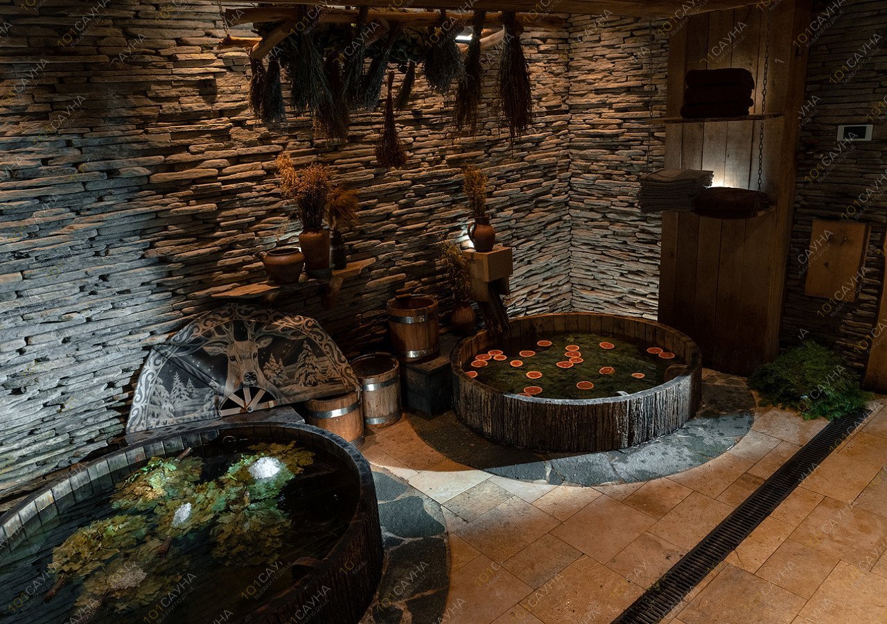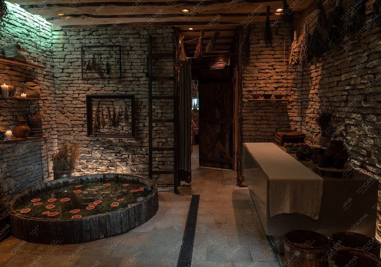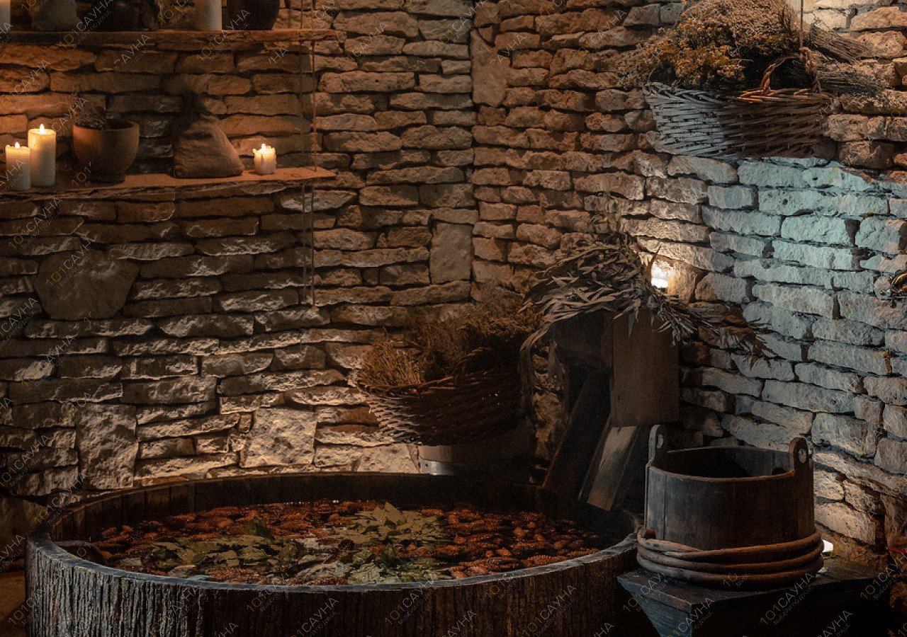 Прогрев дубовыми вениками на ярком пару чередуется с разнотемпературным мятно-берёзовым отваром и дополнительным контрастом студёной водой.