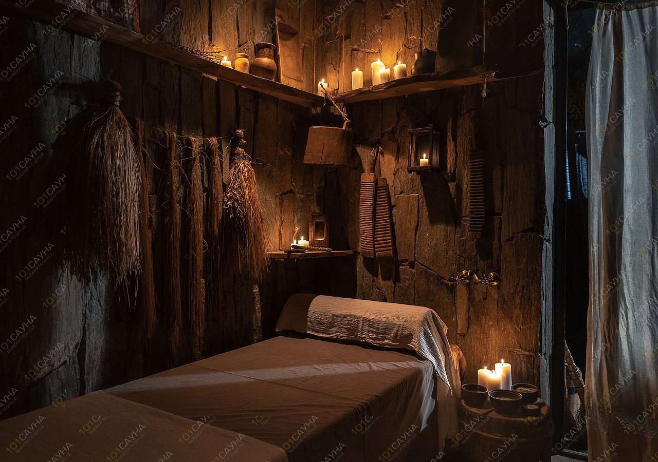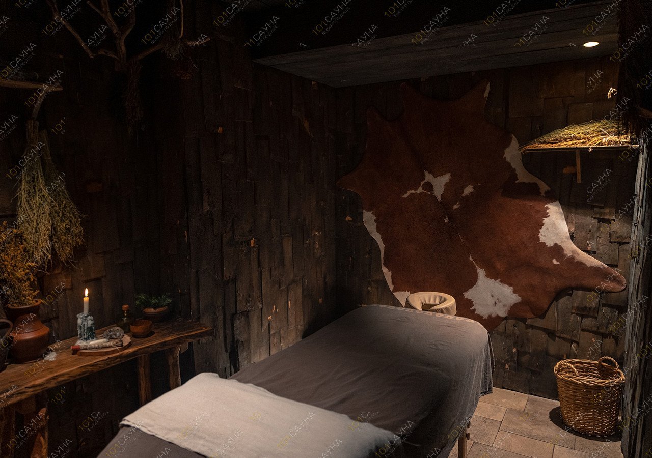 Яркое парение дубовыми вениками на сенном матрасе, компресс ступней мятно-зверобойным отваром и разминание можжевельником. Подготовка к контрасту на остром пару под звуки бубна. Контраст в ледяной купели до состояния медитации.