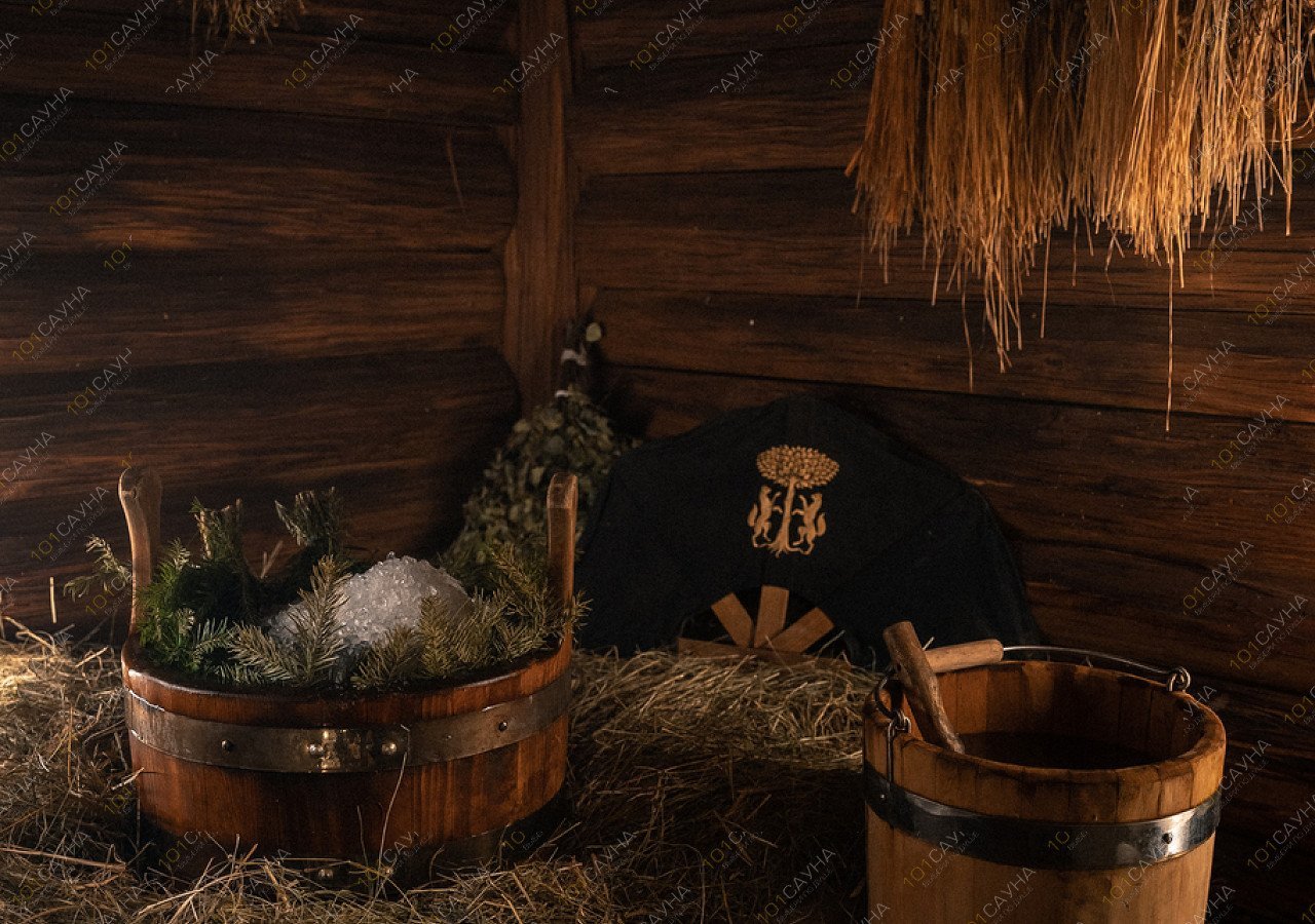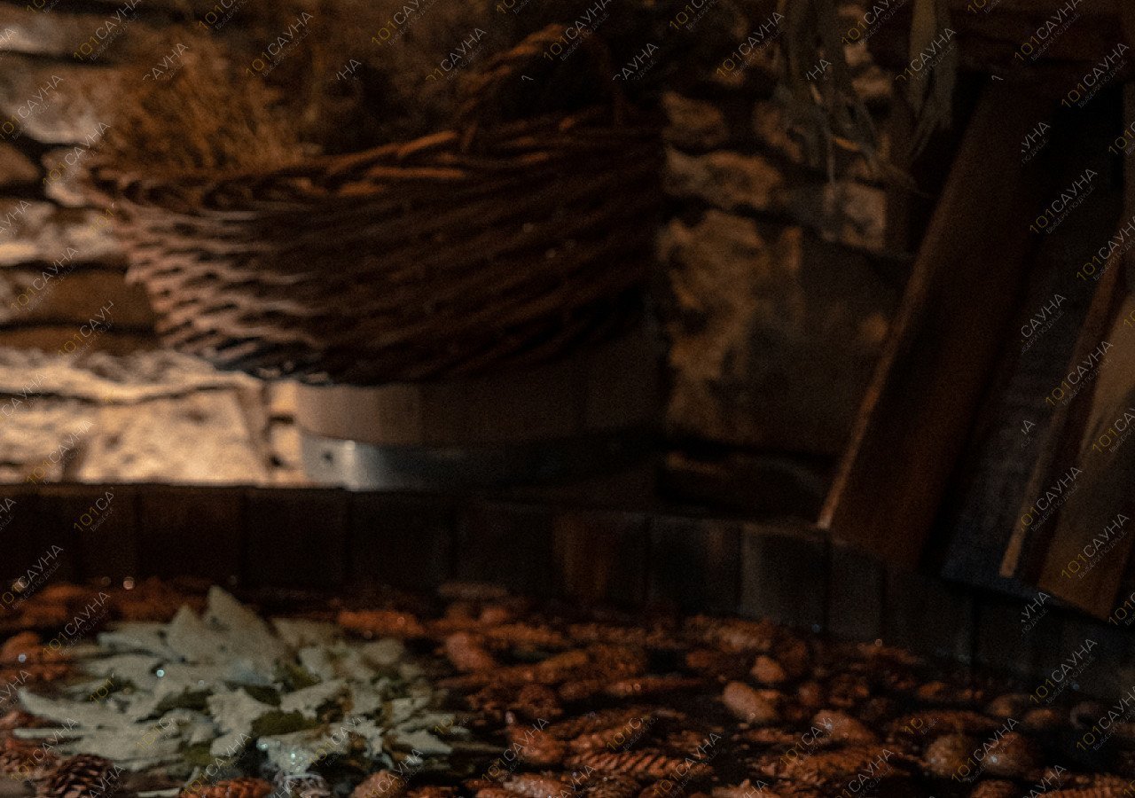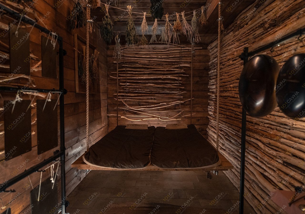 Парение на сенном матрасе, дубовыми вениками, подготовленными в медовой воде. Особый прогрев ног горячим можжевельником и пробивкой ступней деревянными молоточками. Контраст в ледяной пихтовой купели.