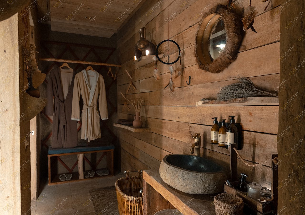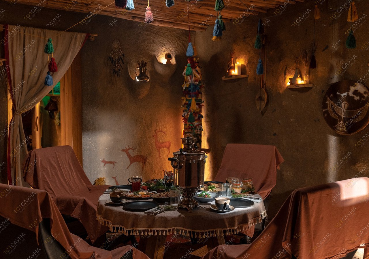 Глиняная парная без острых углов создаёт особую атмосферу и энергетику. Вам не обязательно ехать на Ольхон, чтобы погрузиться в шаманскую атмосферу, услышать озеро Байкал и пройти ритуал парения от шамана острова — это можно сделать у нас.