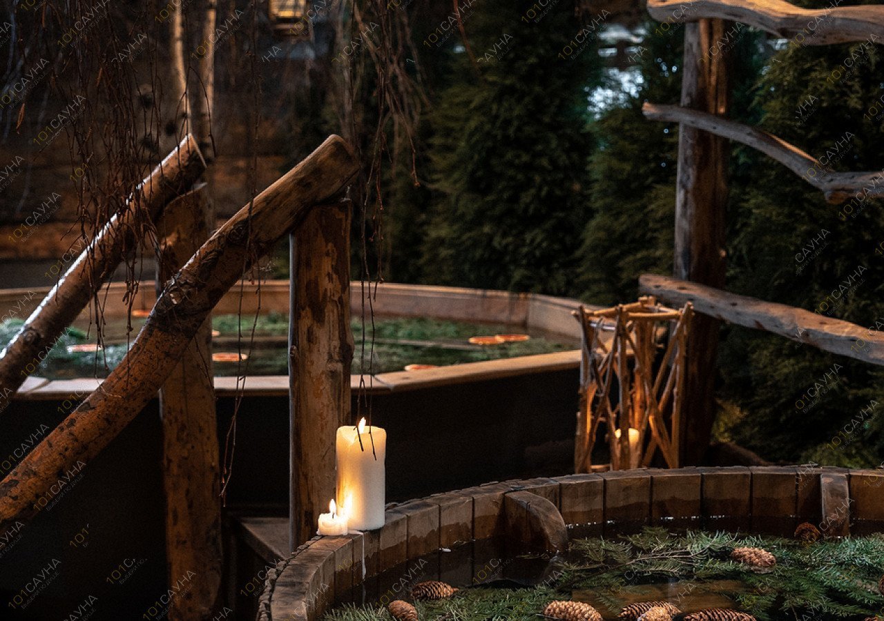 Отдых в отваре из трав, разогретом до комфортных 38 градусов, с горячей пихтой, душицей и лесной мятой. И для особых ощущений — пихтовый прохладный дождь