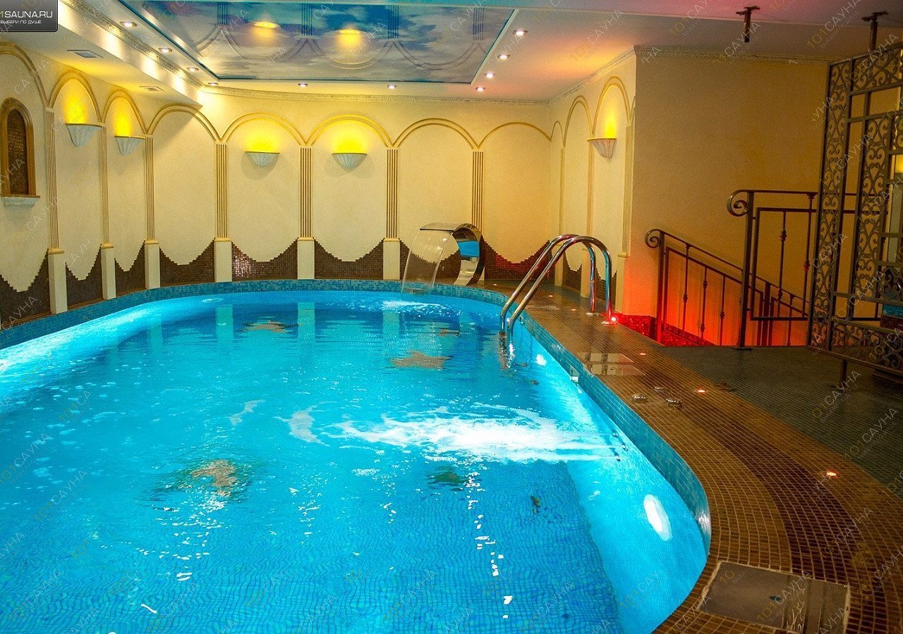 Предлагаем выбор услуг: Большой бассейн (10м), гидромассаж, джакузи, бильярд, ТВ, просторная комната отдыха, банные принадлежности.