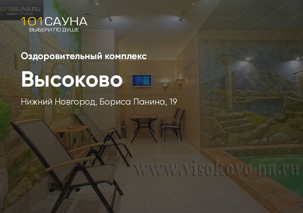 Оздоровительно - развлекательный комплекс "Высоково" на ул. Панина предлагает вам полноценный отдых в комфортабельной сауне. Вам доступны 3 номера, вместимостью от 4 до 10 человек. Возможно посещение сауны с вениками. Отдыхая в номерах нашей сауны вы можете сделать заказ в нашем кафе или баре, а также воспользоваться караоке.
