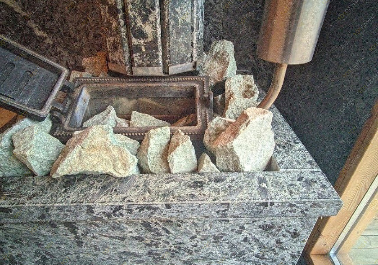 - парилка с можжевеловым панно, отделанная кедром и абашем, дровяная банная печь в каменной облицовке с возможностью поддавать в открытую и закрытую каменку.