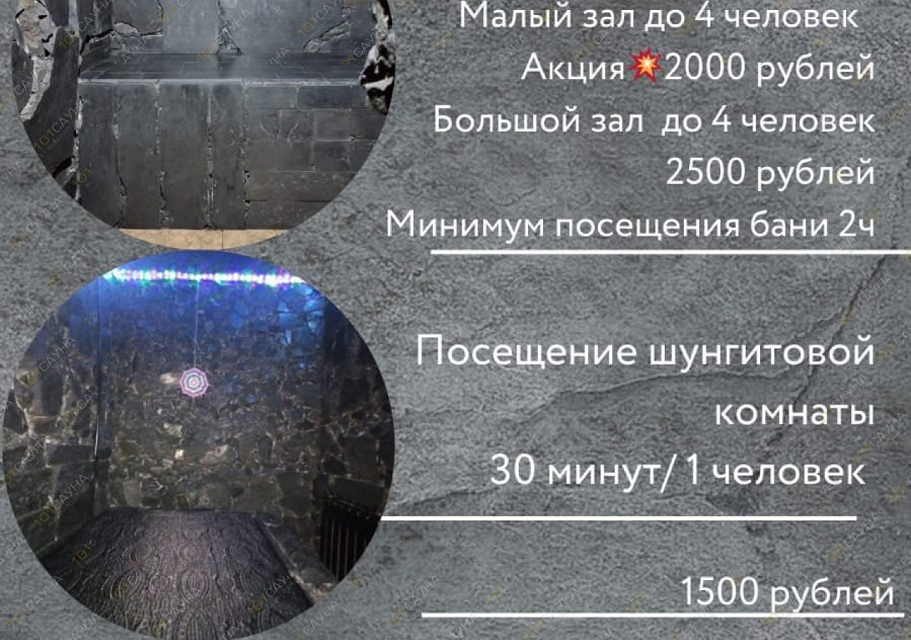Шунгитовая баня "Тайна Омоложения"Это VIP СПА ПроцедураШунгит обладает очень высокой обеззараживающей способностью. Кроме того, его пары насыщены витаминами, ионами кремния, магния, железа в легкодоступной для усвоения форме.