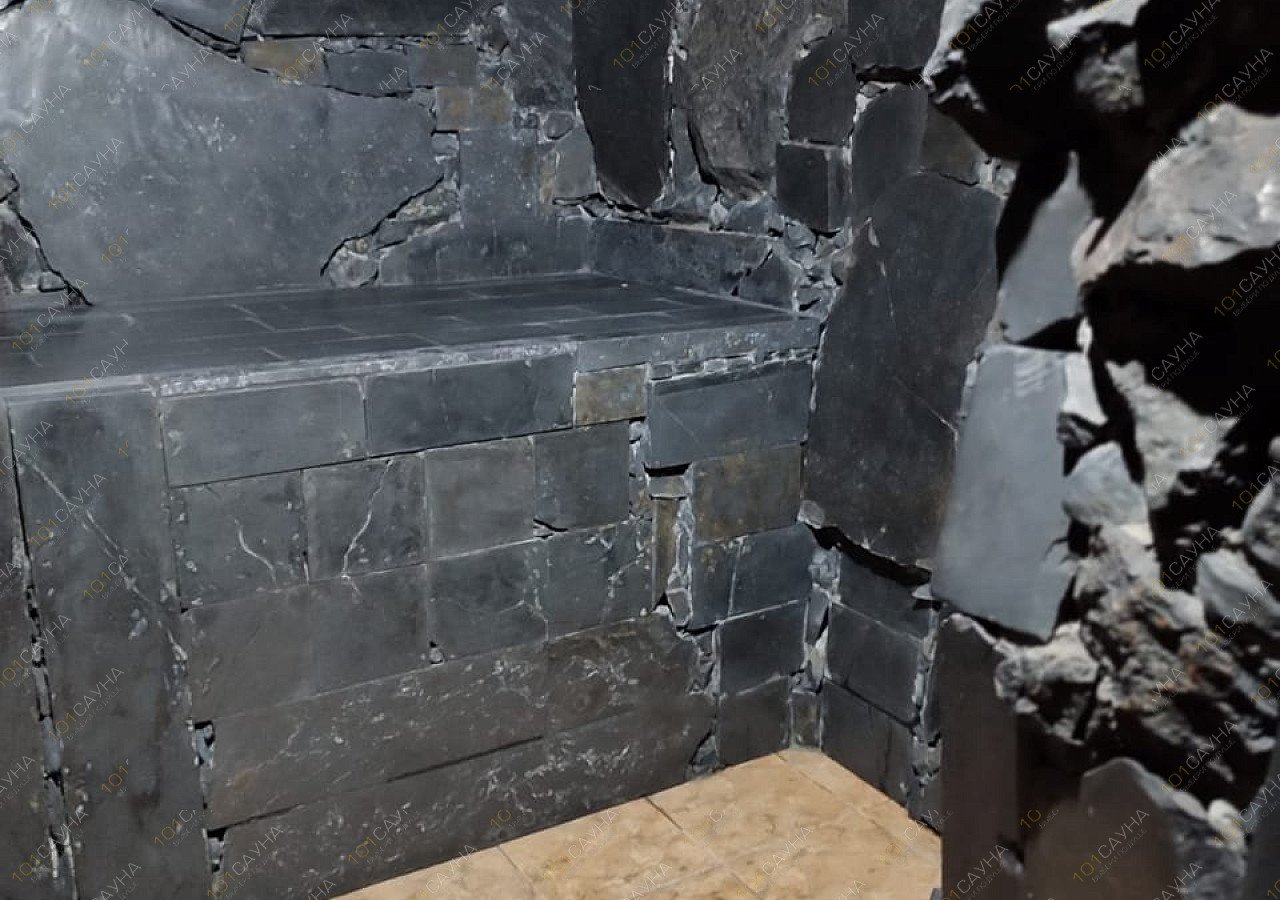 Шунгитовая отделка парной позволяет воздействовать на организм человека всесторонне. Большое количество камня проявляет себя под паром следующим образом: