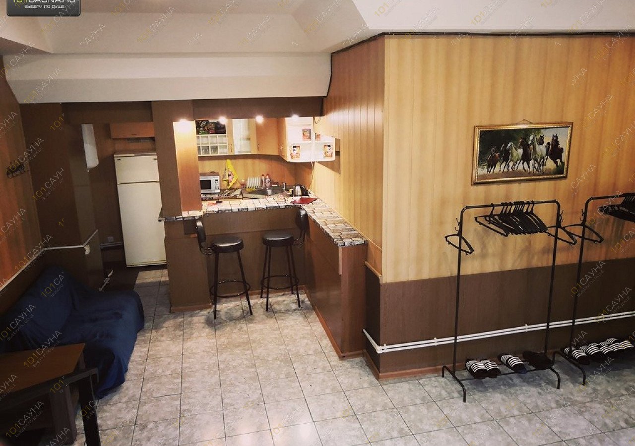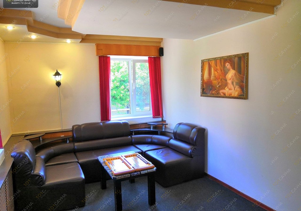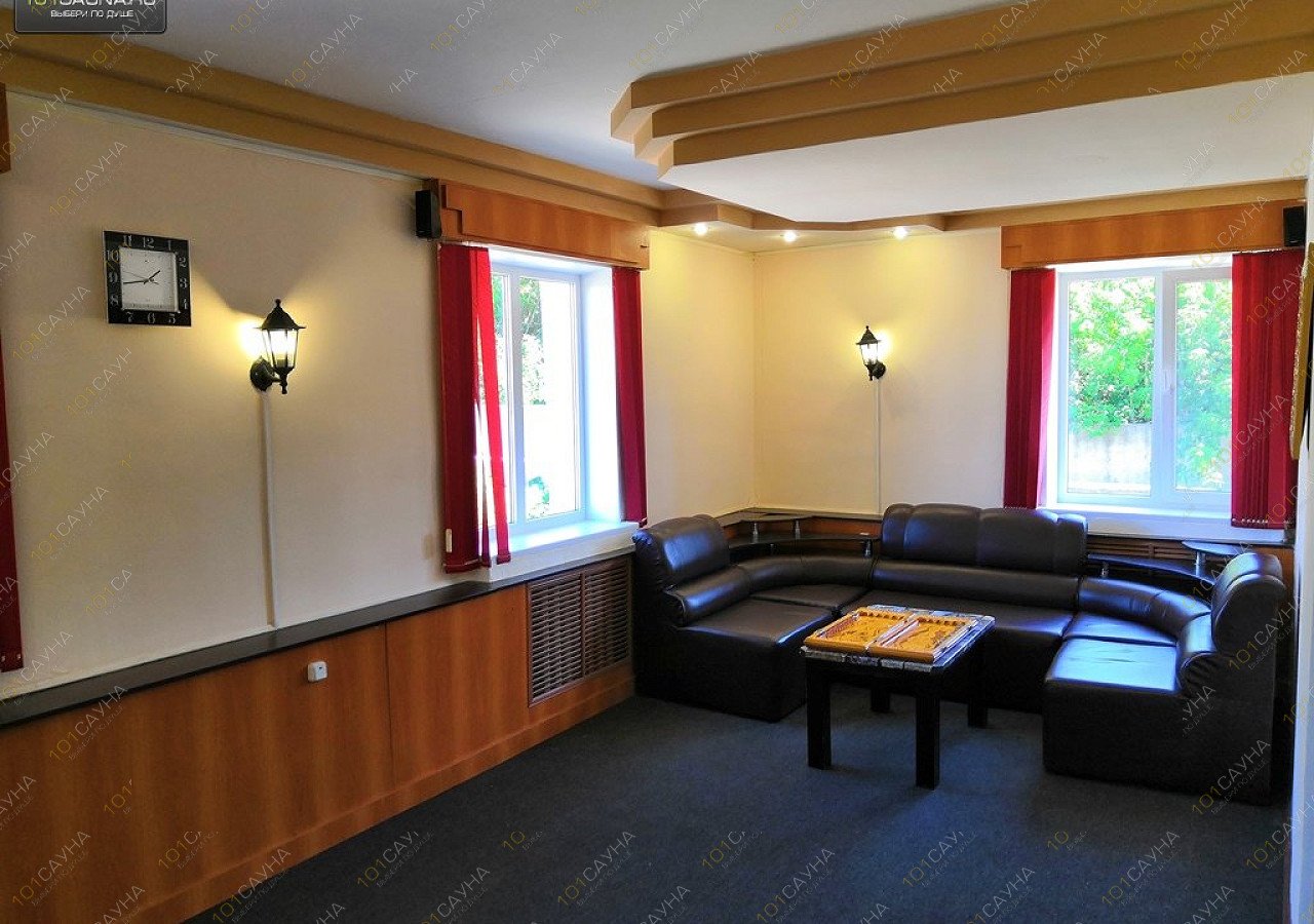 Уютная сауна с русской баней на дровах, трехэтажная. Удобное расположение. Большой банкетный зал. Большой бассейн. Комната отдыха. Русская кухня.