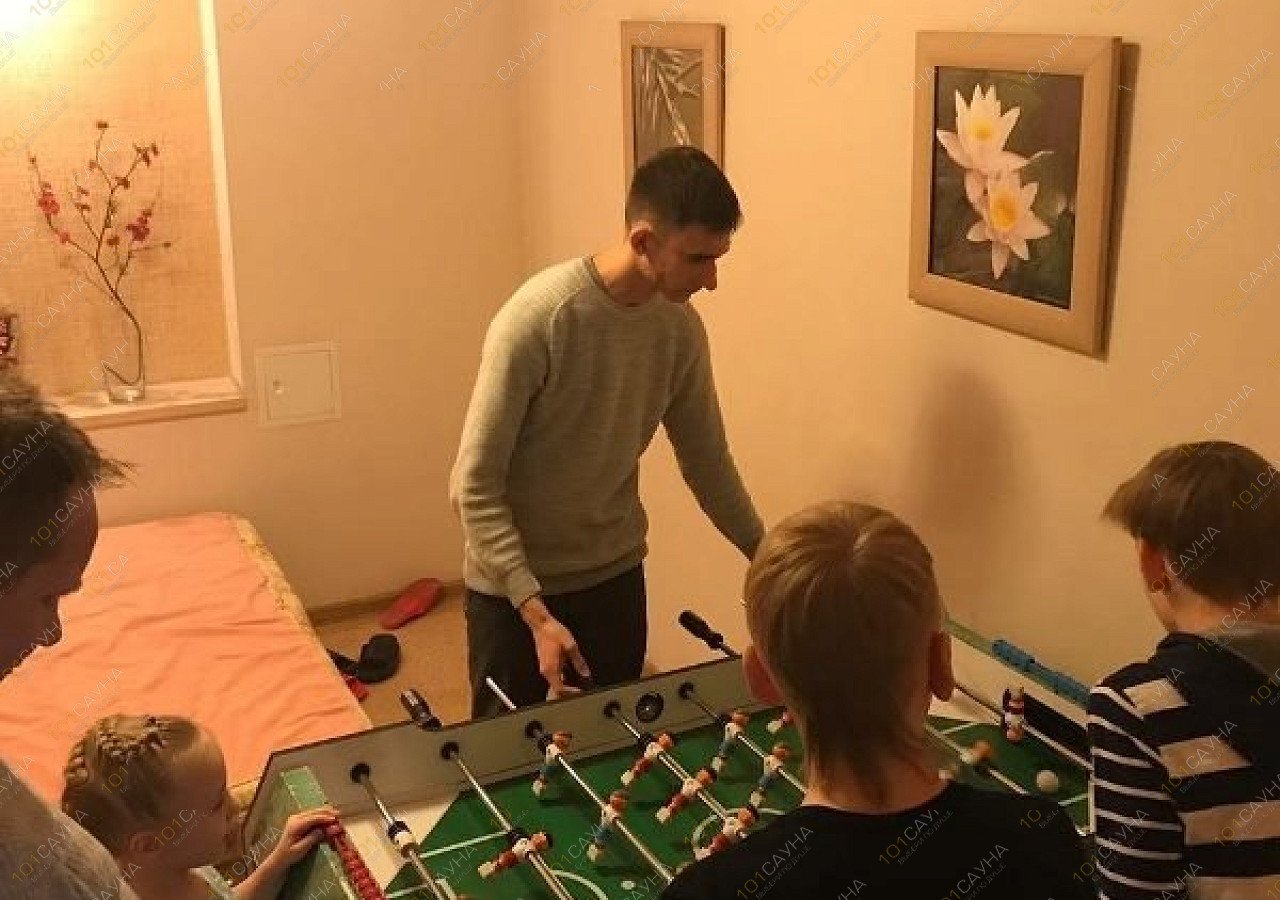 Предлагаем выбор услуг: джакузи бассейн с подсветкой, зона отдыха, выбор веников, можно париться с веником, обливное ведро, настольный футбол, ТВ, бильярд, гостиная, комната отдыха,.
