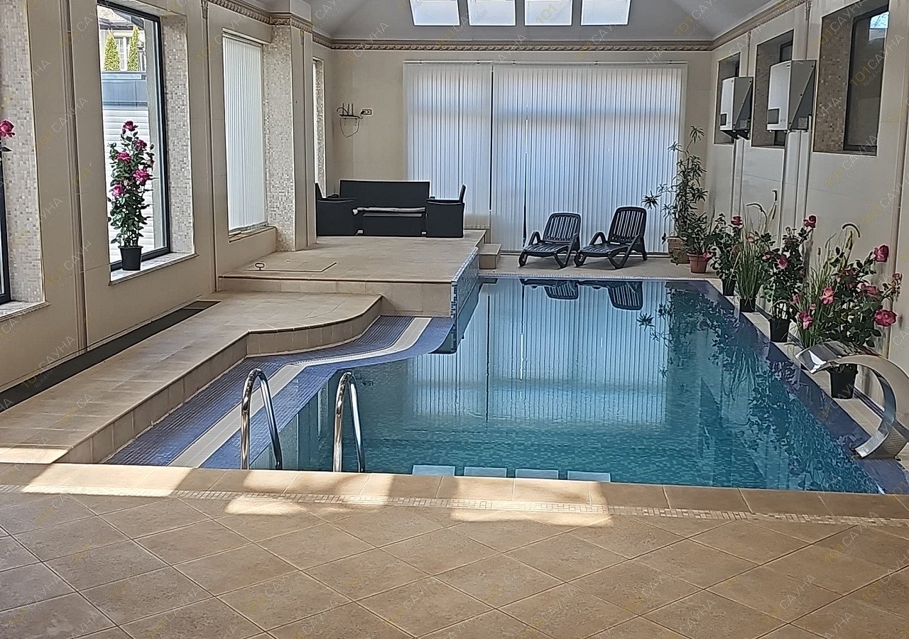 Здесь же находится новая, уютная и комфортабельная финская сауна, удобные душевые, вместительный турецкий хамам и большой бассейн 4 на 9 метров с кристально чистой, освежающей водой.