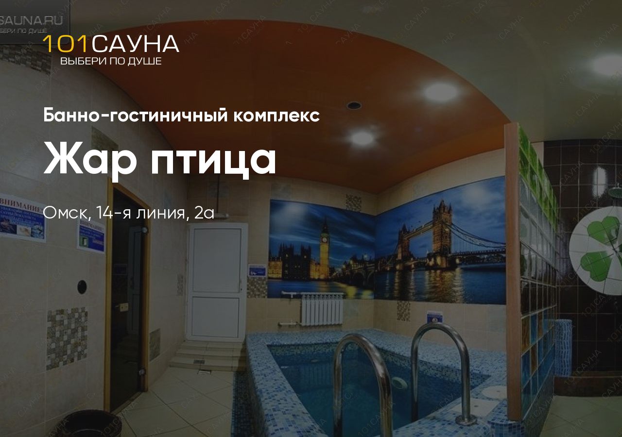 Банно-гостиничный комплекс «Жар-птица» находятся в тихом живописном месте на берегу реки Омь, в непосредственной близости от центра города. Вы можете выбрать из 3-х тематических финских номеров и русской бани на дровах.