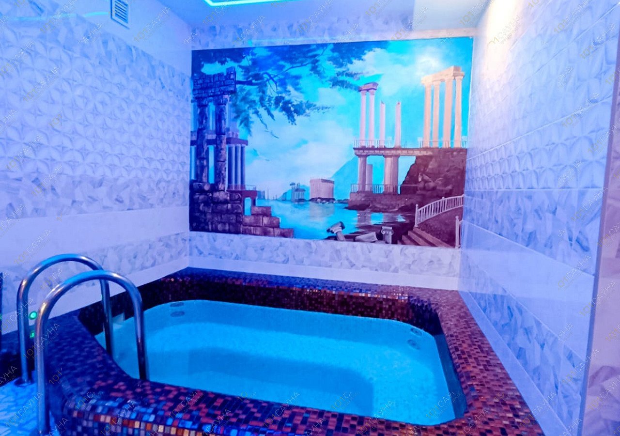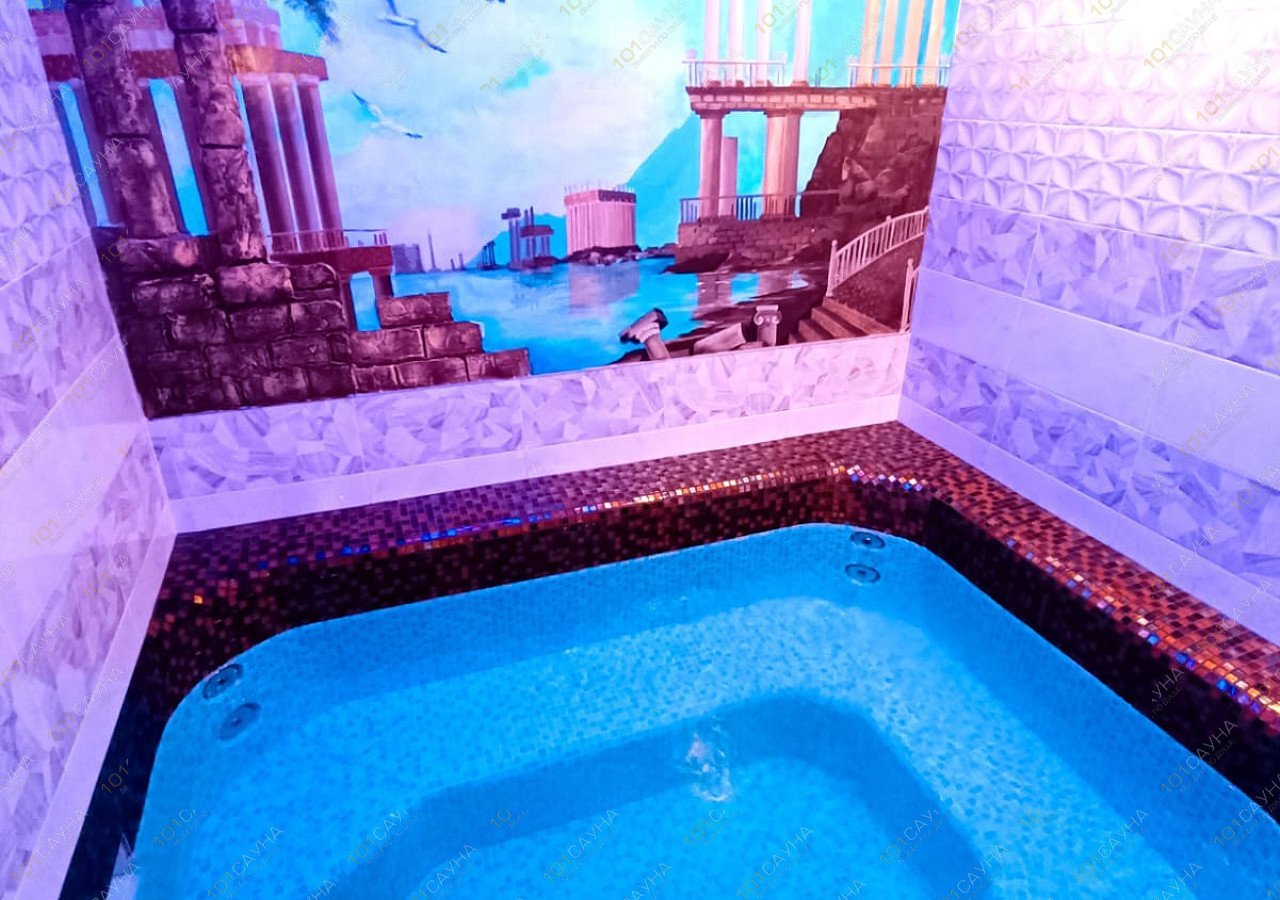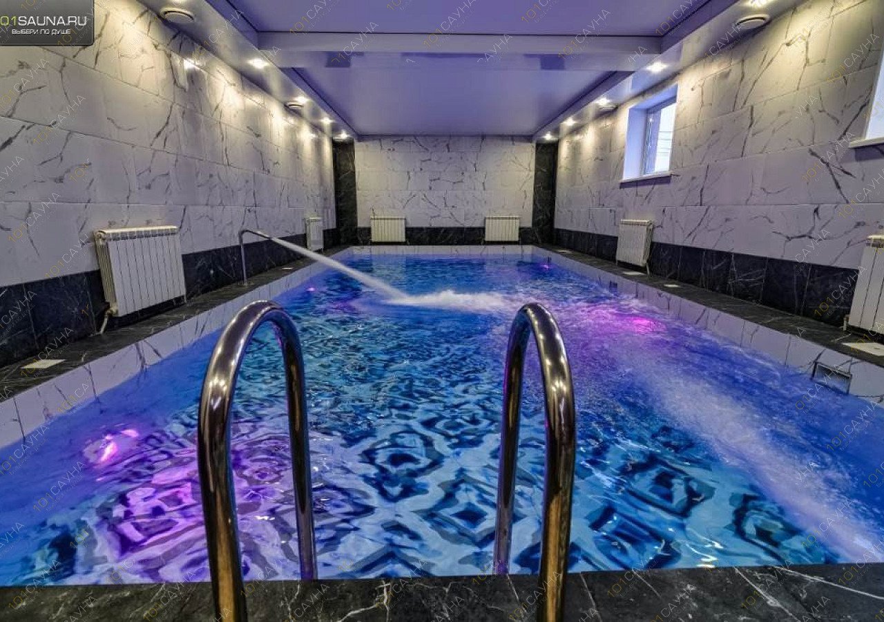Предлагаем выбор услуг: бассейны с подсветкой, гидромассаж, горка в бассейн, зона отдыха со столом для гостей, тренажерный зал, ТВ, массажное кресло, парковка.