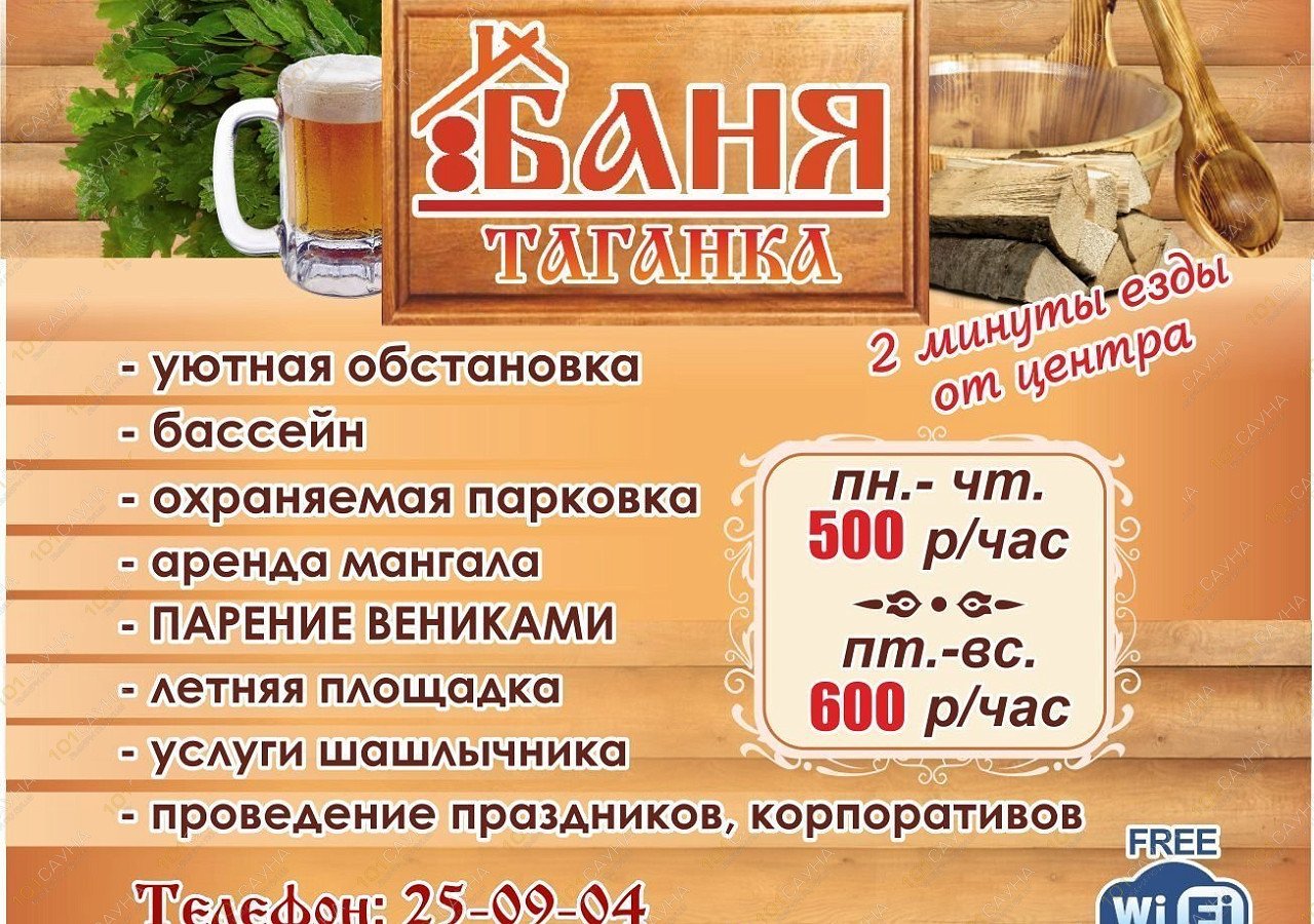 Предлагаем выбор услуг: Русская банька с ВЕНИКОМ, ароматические масла на любой вкус, бассейн, обливное ведро, тёплые полы, комната отдыха, цифровое ТВ, караоке, летняя площадка с мангалом, всегда свежие холодные напитки, душистый заварной крупно листовой чай, бесплатный Wi-Fi.На закрытой территории Сауны вы можете сами пожарить шашлык так же у нас для Вас предусмотрена услуга шашлычника. Удобная охраняемая парковка..