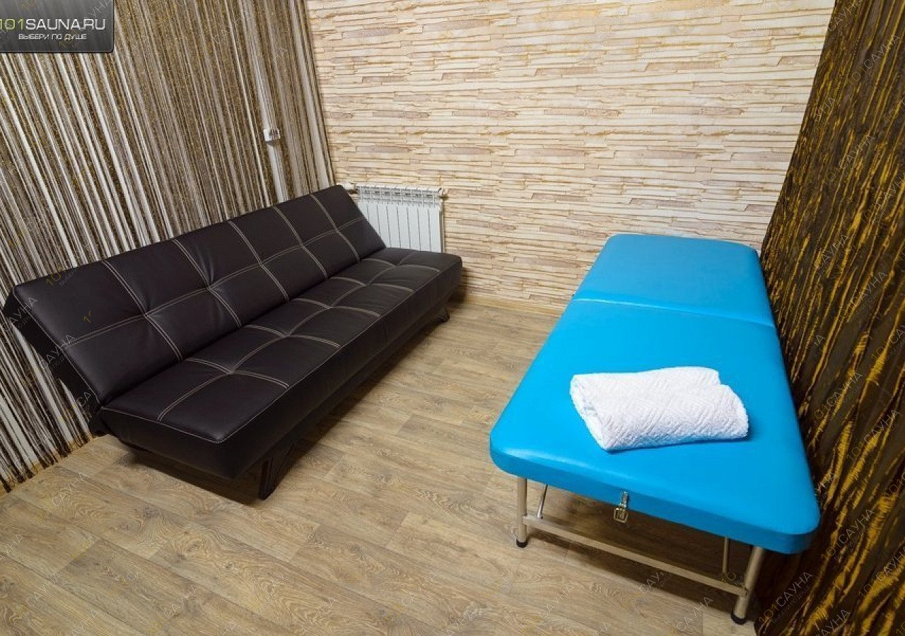- Кожаный диван, массажный стол.