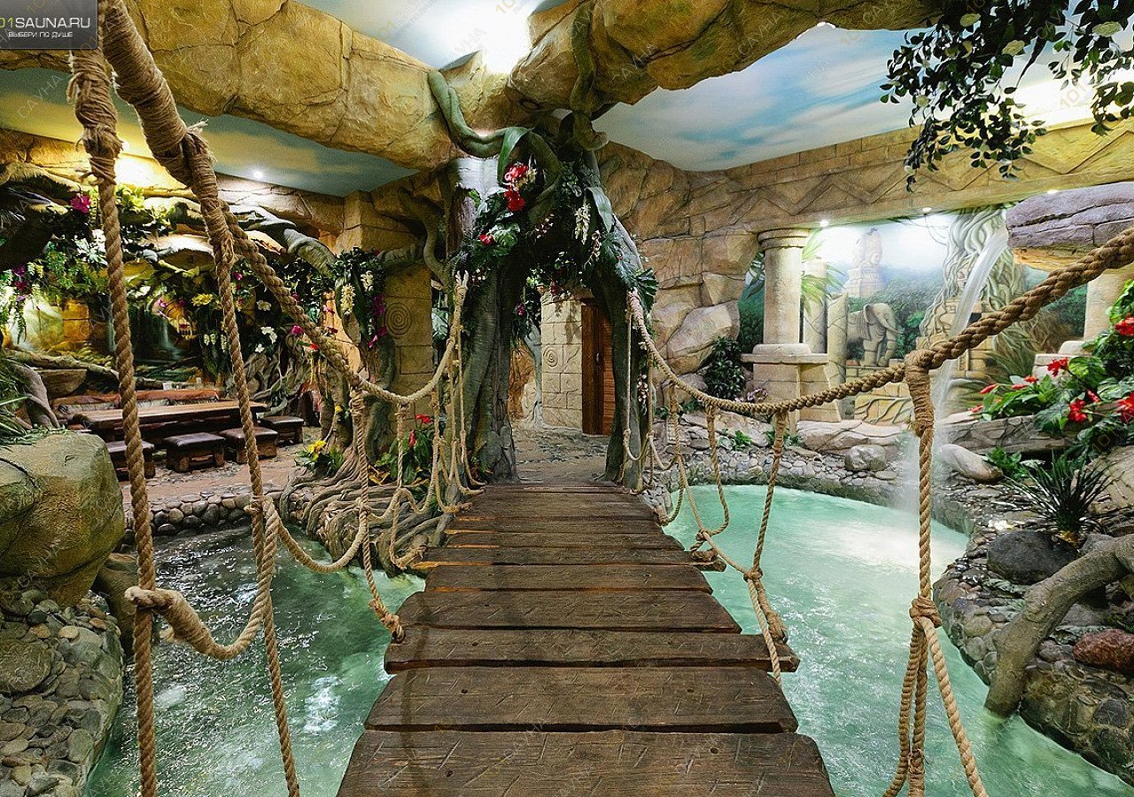 Окажитесь в потрясающем мире настоящих джунглей! Искупайтесь в гейзере, поймайте поток свежего водопада, отдохните в окружении зарослей тропических цветов. Всё для полной перезагрузки и ощущения настоящего отпуска! До 5 человек. 200 руб./час — за каждого последующего гостя. Без пользования лиственным веником.