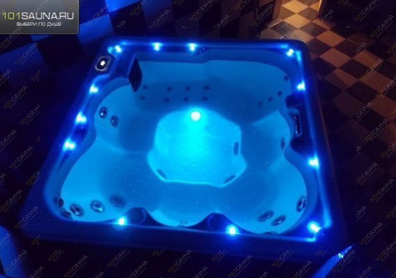 Далее Вы окунетесь в Спа-бассейн с гидромассажем, теплой водой и сказочной подсветкой, вмещающий в себя до 6 человек одновременно ( 5 удобных сидений и кресло-шезлонг).