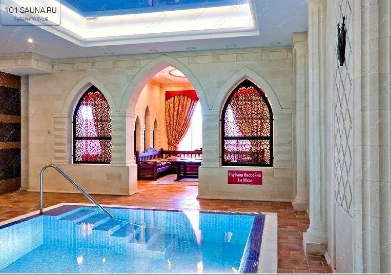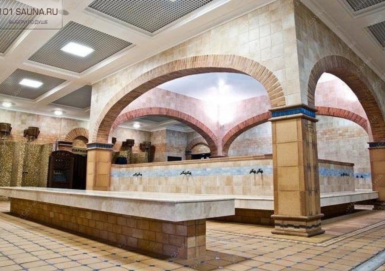 После парной приятно взбодриться в кабине с ушатом ледяной воды и поплавать в бассейне со встроенными гидромассажными зонами, перенестись в восточную сказку посетив хаммам с процедурой пилинга на мраморном подогретом столе.
