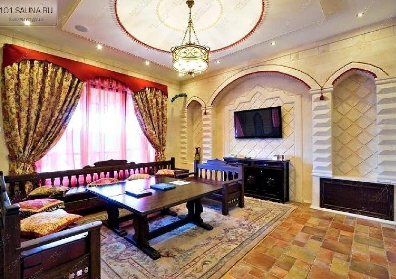 В каждой бане есть бассейн, русская парная, хамам, зона для массажа. Уютная гостиная с телевизором, где можно приятно провести время и комната отдыха, в которой можно отдохнуть после процедур.