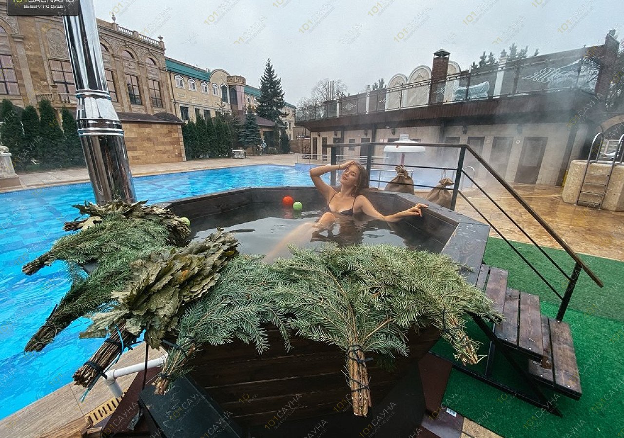 Предлагаем выбор услуг: Бани: открытый плавательный бассейн с подогревом круглый год, джакузи, полотенца, тапочки, чайник травяного чая, сушки, конфеты, настольные игры, парилка, банный чан на огне, массажный стол с подогревом, обеденный стол, караоке, плазменный телевизор, комната отдыха.